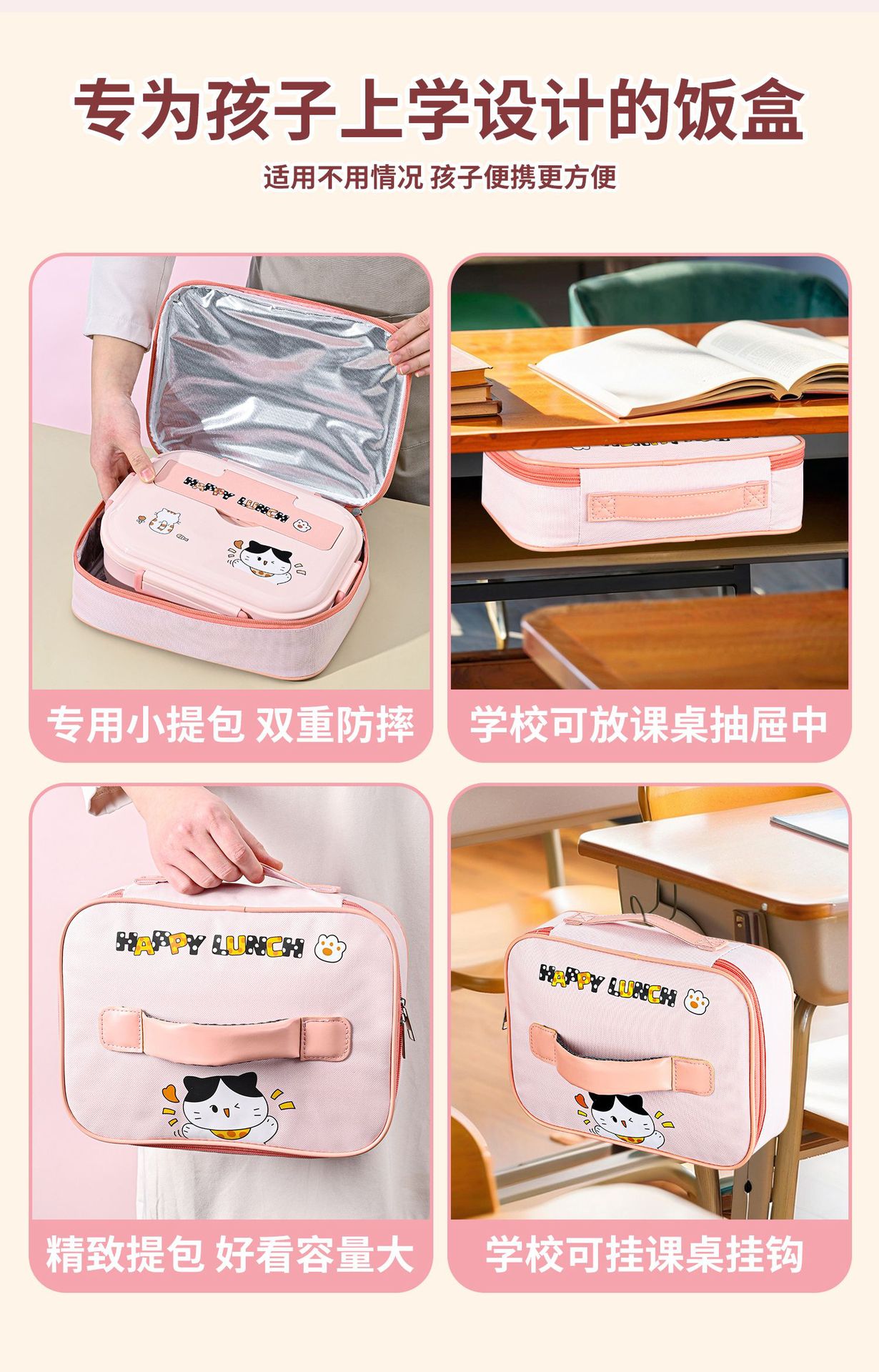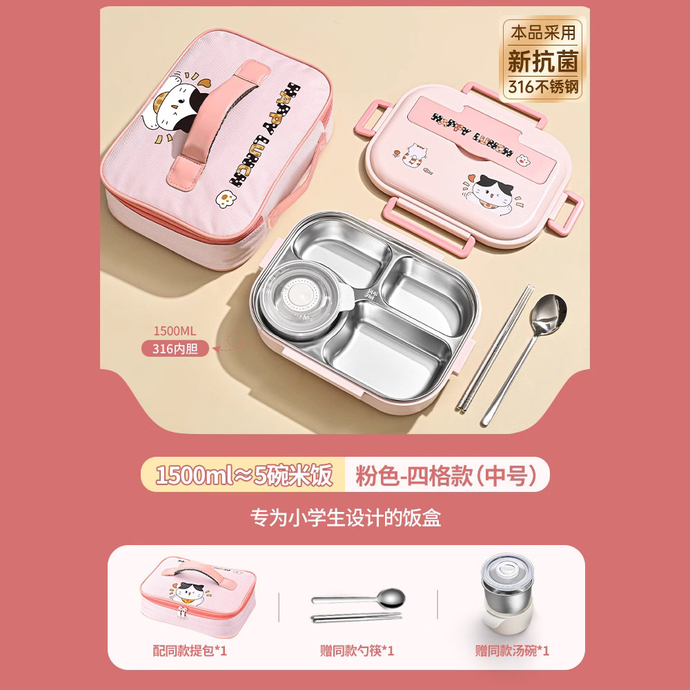 [upgrade thickened antibacterial 316l steel] pink-four grid 1500ml (send chopstick and spoon + soup bowl + thermal bag).