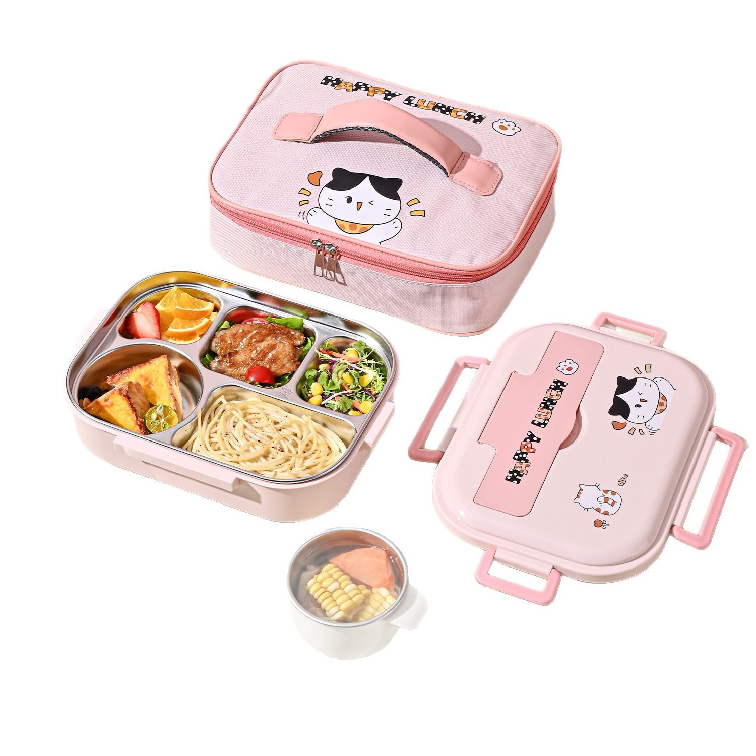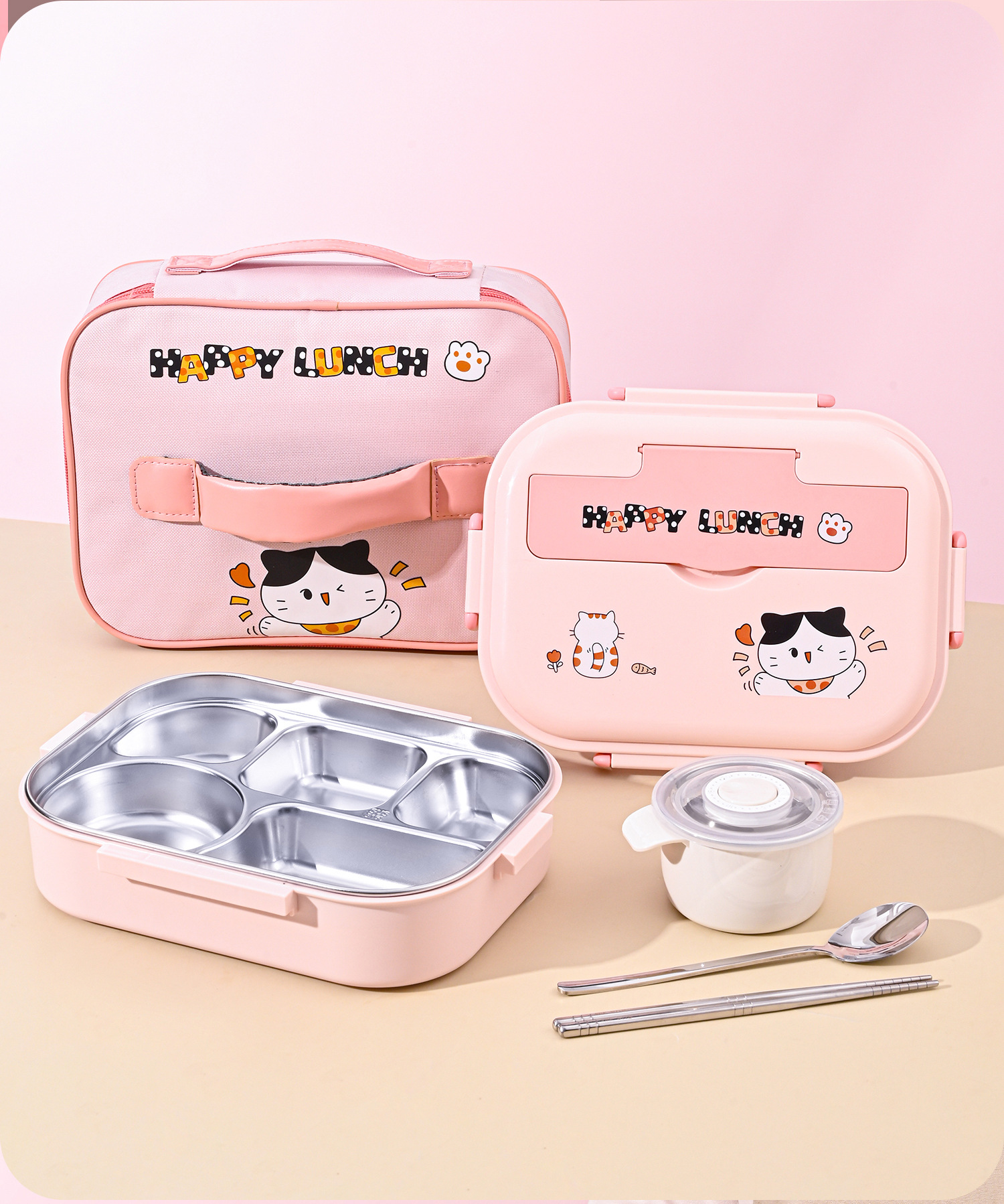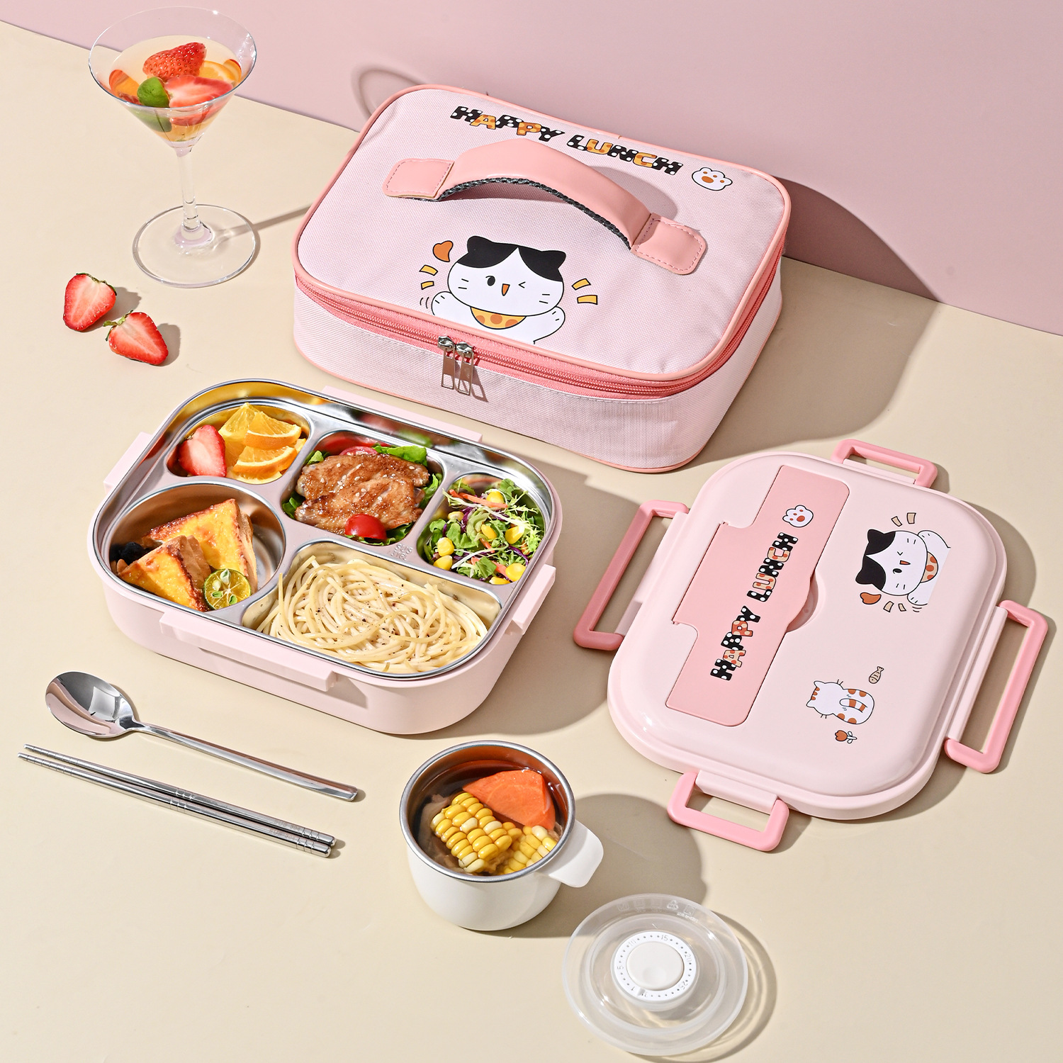 316l steel-pink-five grid 1500ml (send chopstick and spoon + soup bowl + thermal bag).