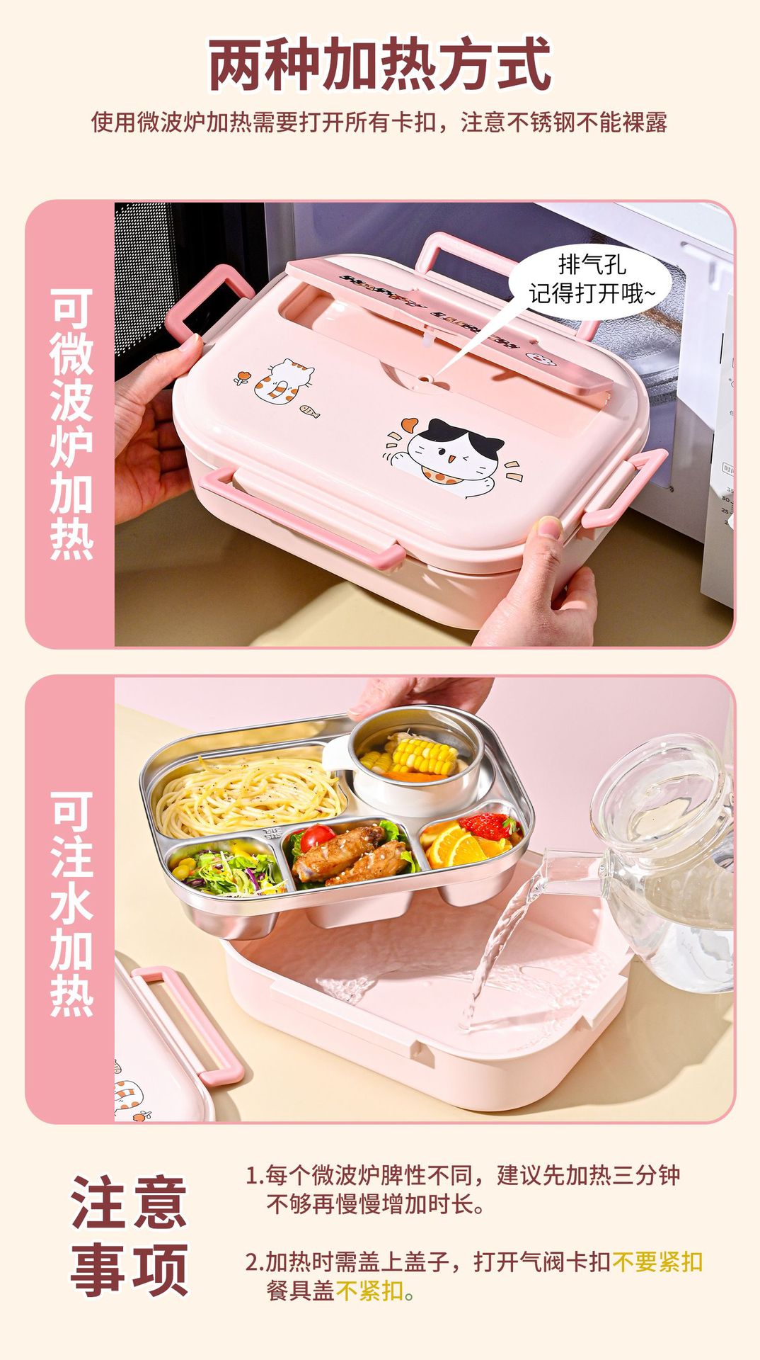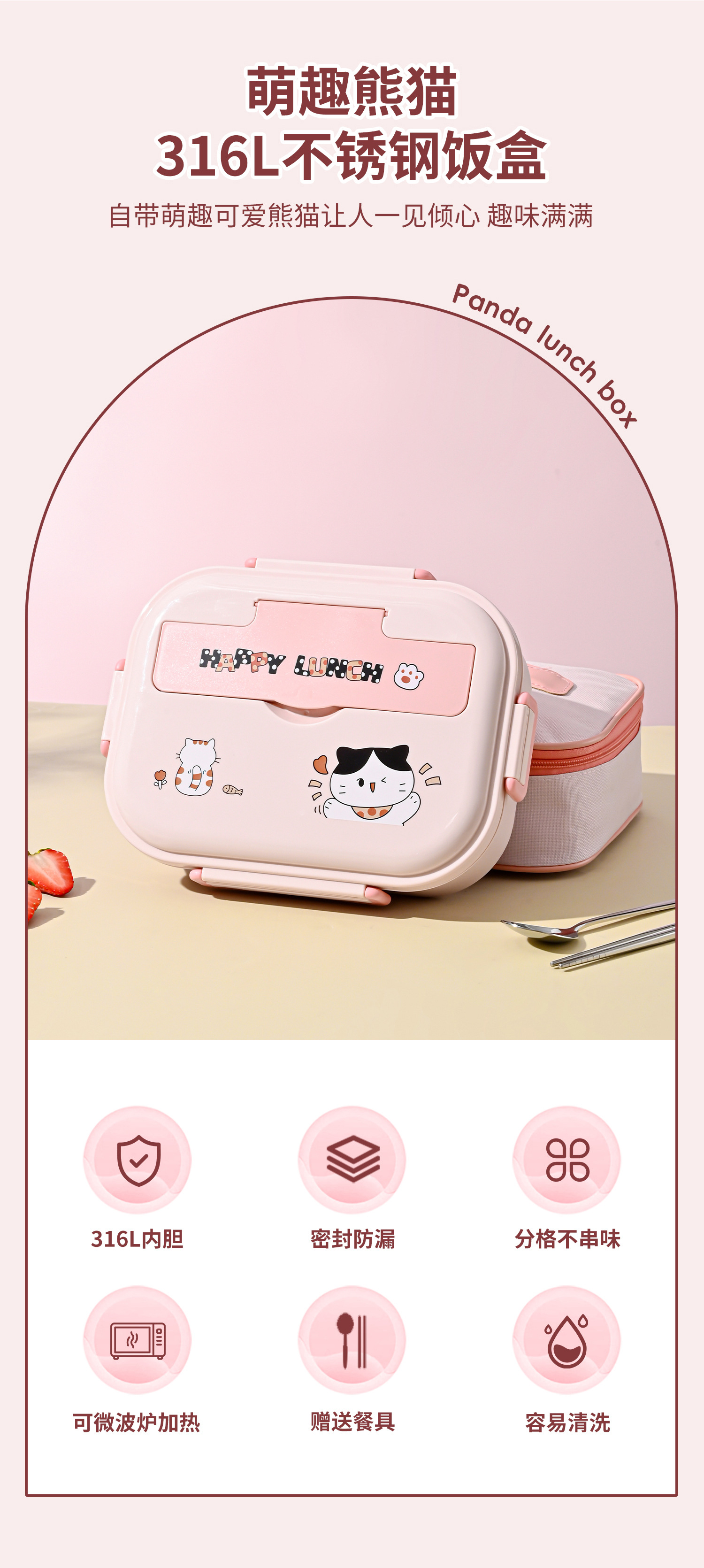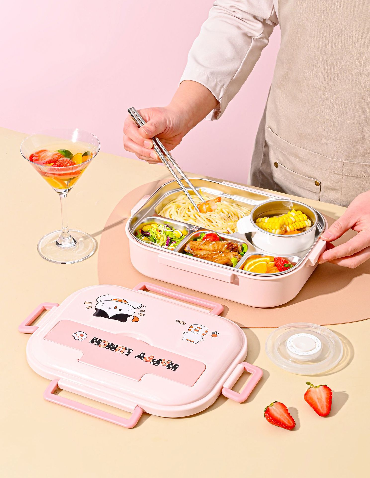 316l steel-pink-five grid 1500ml (send chopstick and spoon + soup bowl + thermal bag).