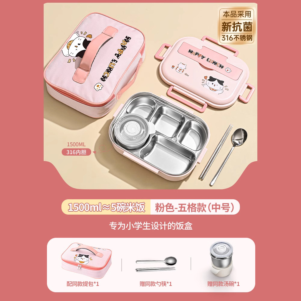 [upgrade thickened antibacterial 316l steel] pink-five grid 1500ml (send chopstick and spoon + soup bowl + thermal bag).