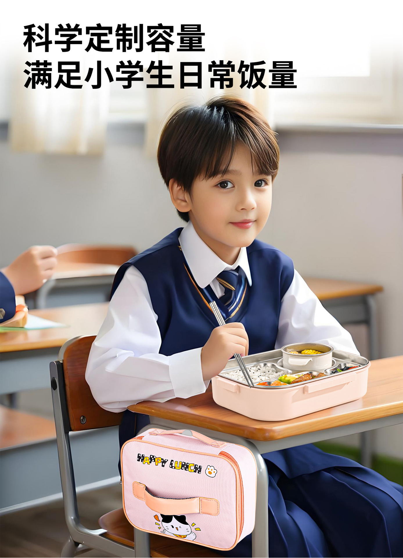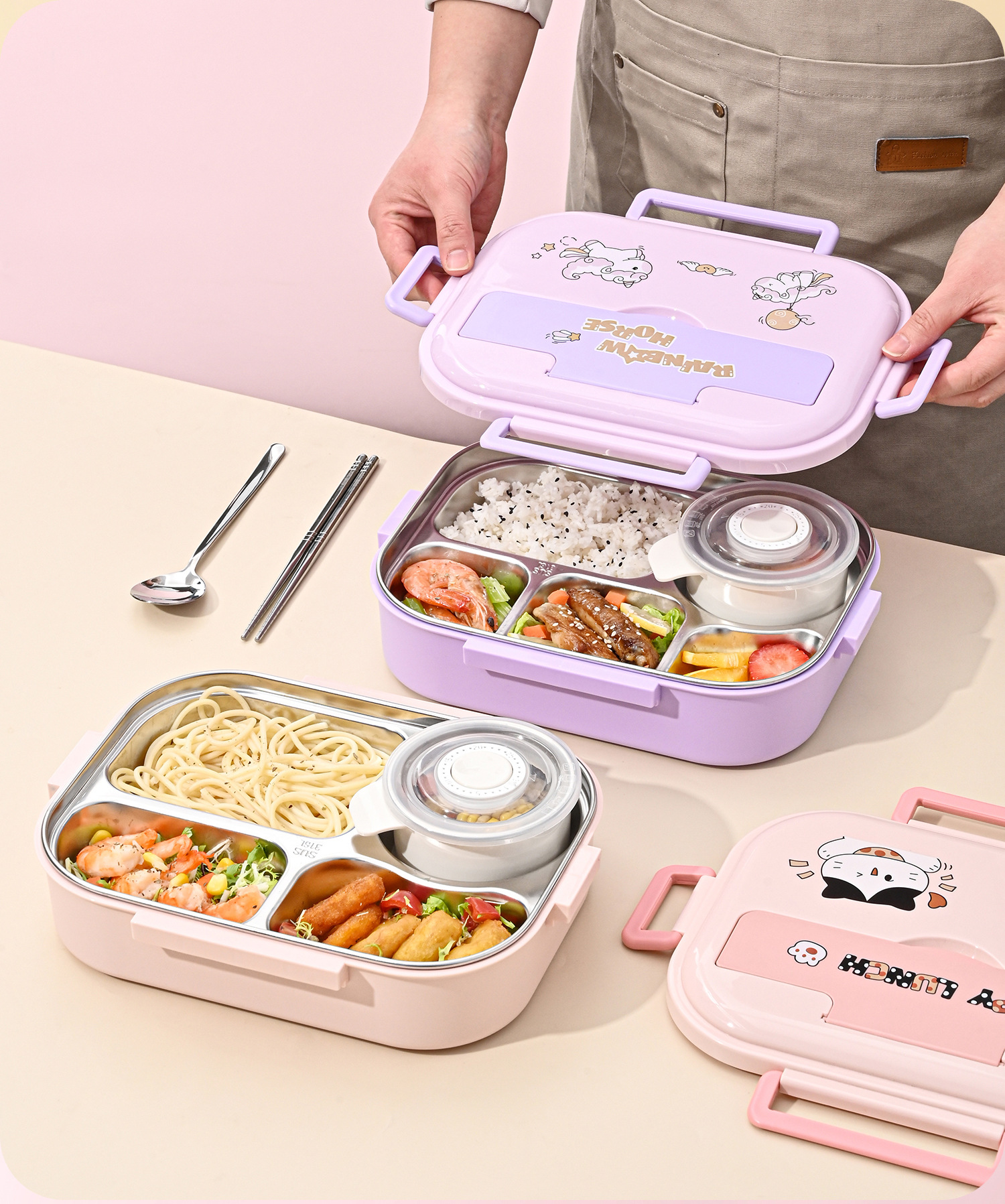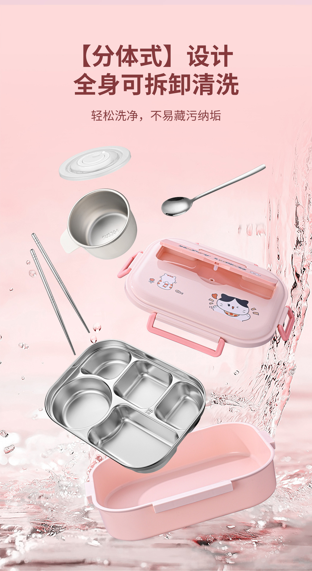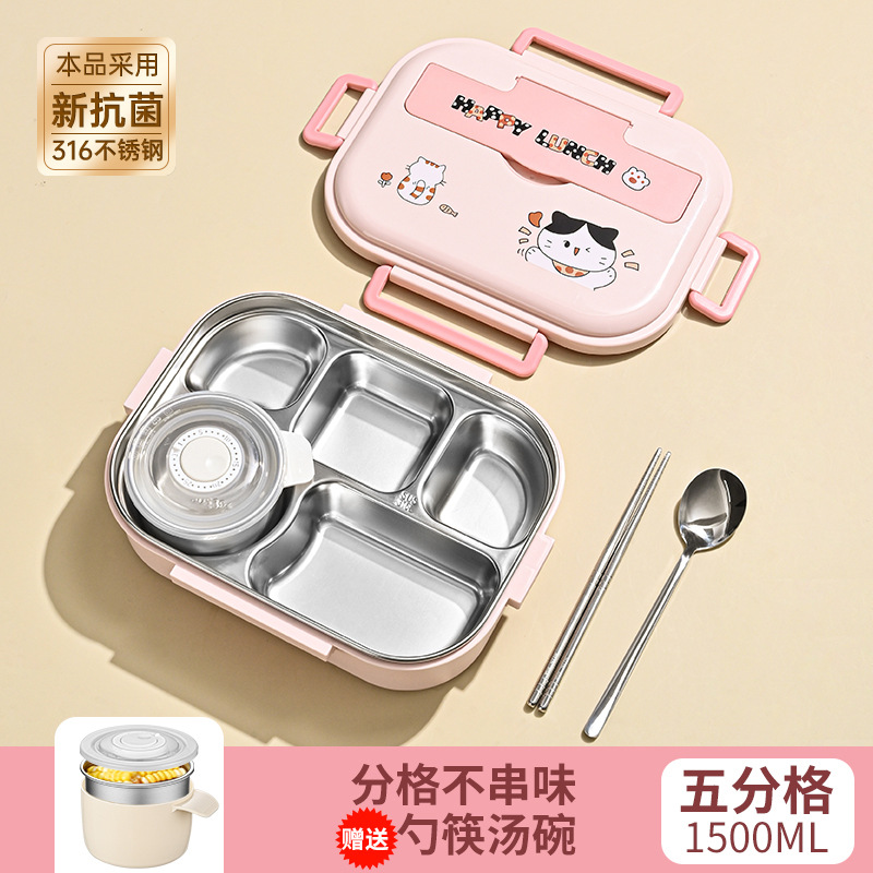 [upgrade thickened antibacterial 316l steel] pink-five grid 1500ml (send chopstick and spoon + soup bowl).