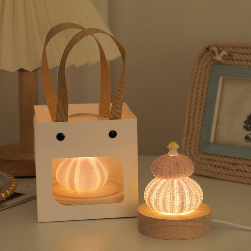 creative shell sea urchin handmade diy small night lamp ambience light bedroom desktop decoration gift decoration birthday gift