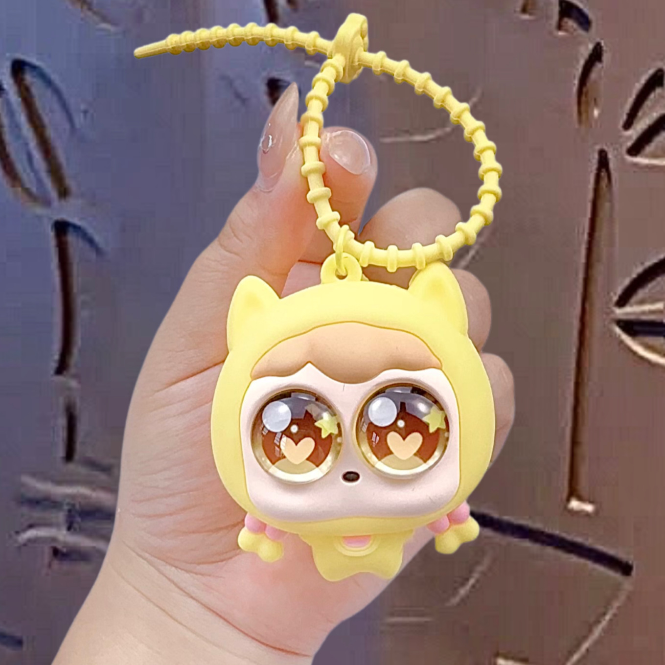 big eye cat squeezing toy pendant-yellow