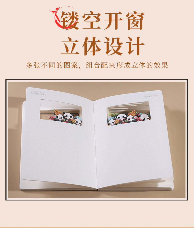 3d paper carving notebook-white panda