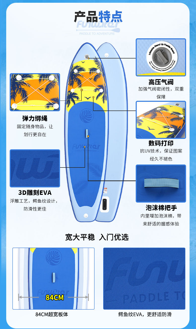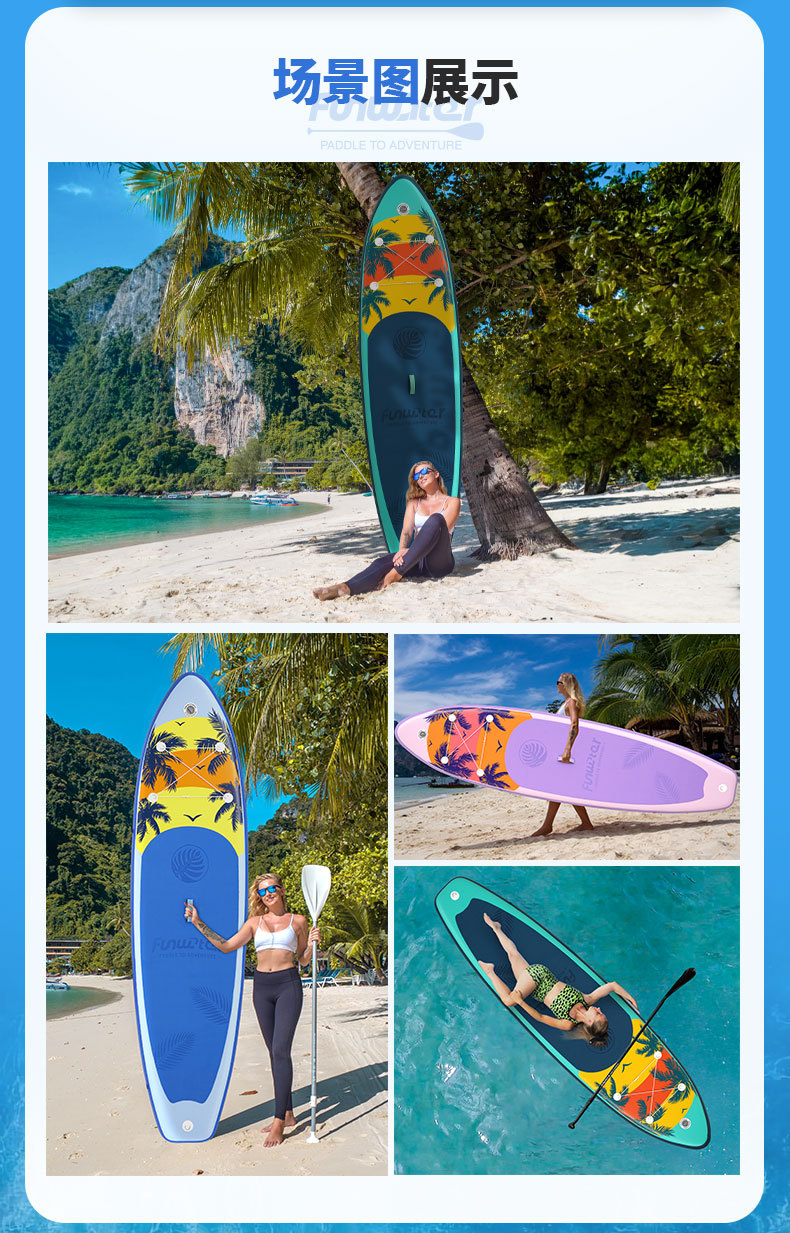 supfw37a -- 335cm blue coconut tree (with camera dock + single and dual-purpose paddle + seat)