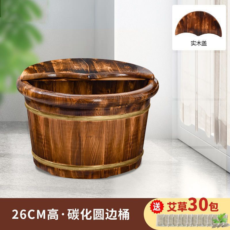 26cm carbonized round-edge barrel (30 packs of argy wormwood for free)-+ solid wood cover⚑⚑