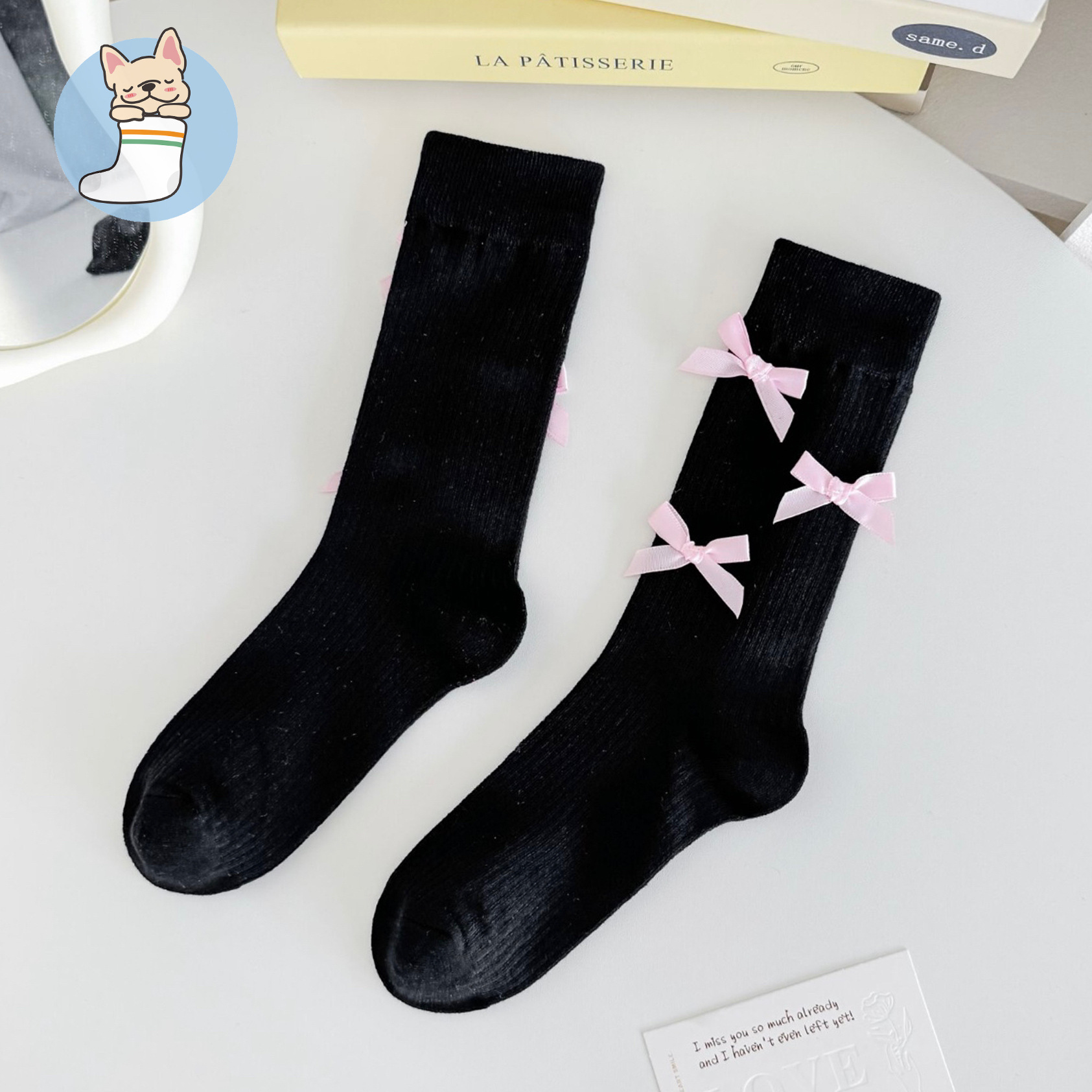 black background and white bow