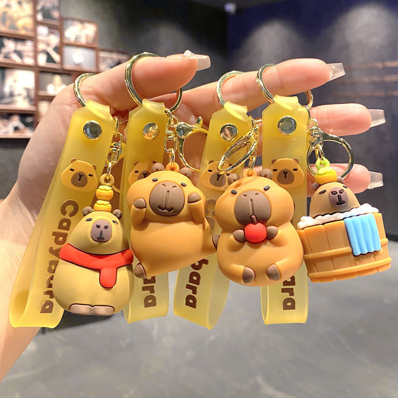 Capipara cartoon keychain ornaments PVC soft rubber cute doll accessories luggage and bags hooks