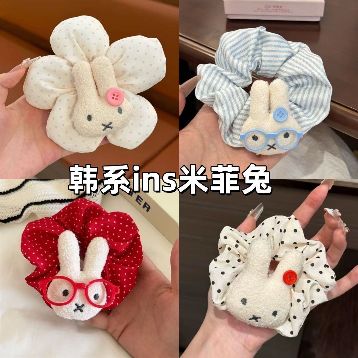 miffy rabbit white ring black dot large intestine hair ring