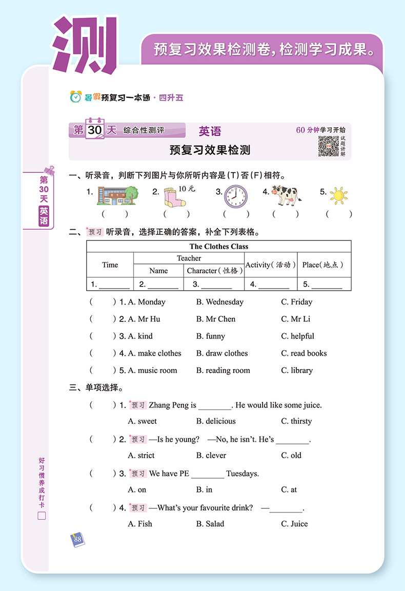 summer vacation pre-review 5 liters 6 languages digital english (pep edition)