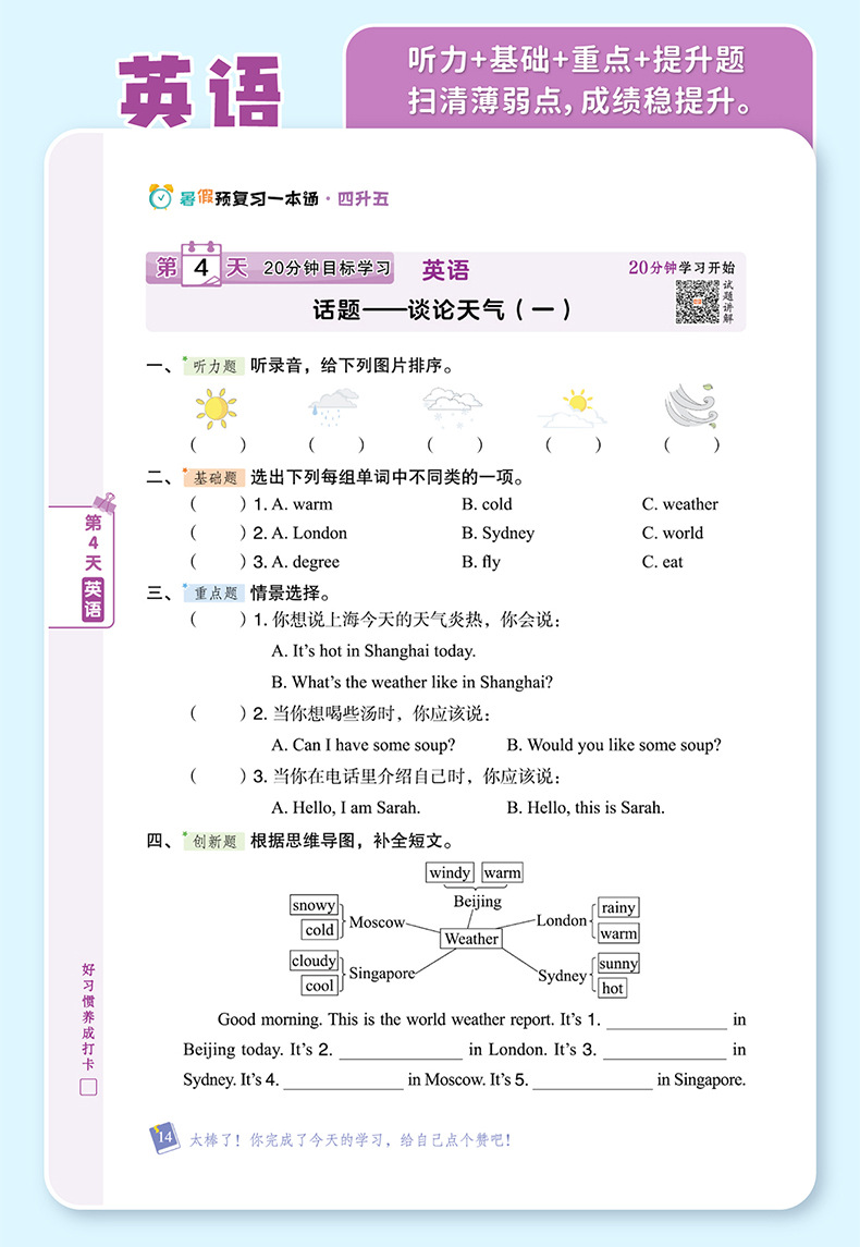 summer vacation pre-review 4 liters 5 languages digital english (pep edition)