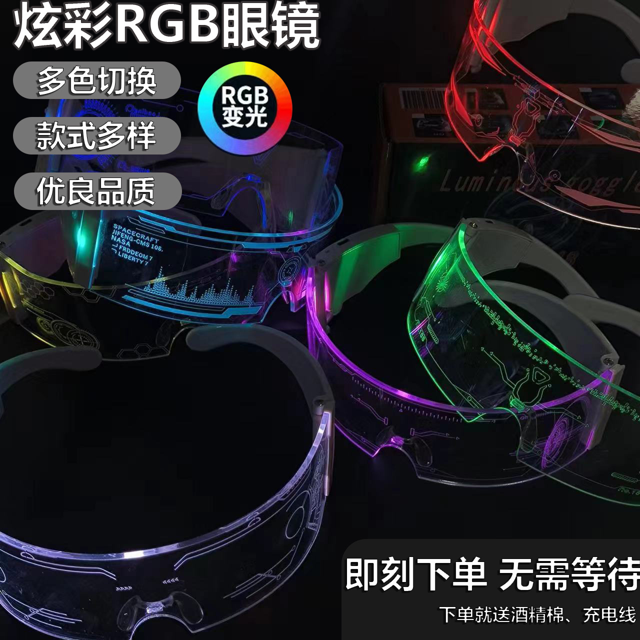 luminous glasses rechargeable disco future technology glasses cyberpunk internet celebrity science fiction nightclub photography props cool