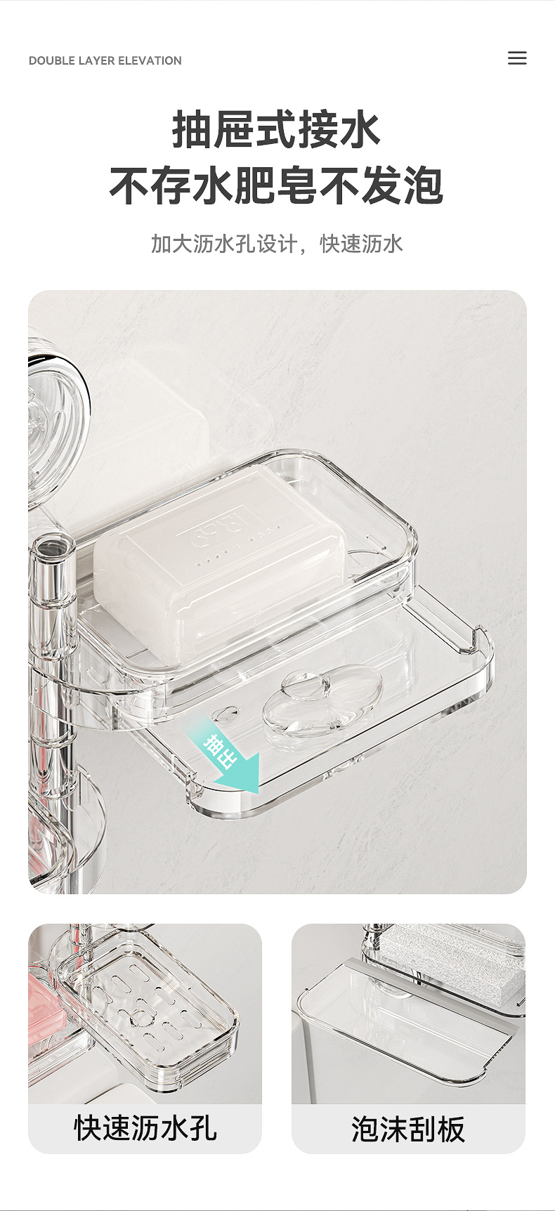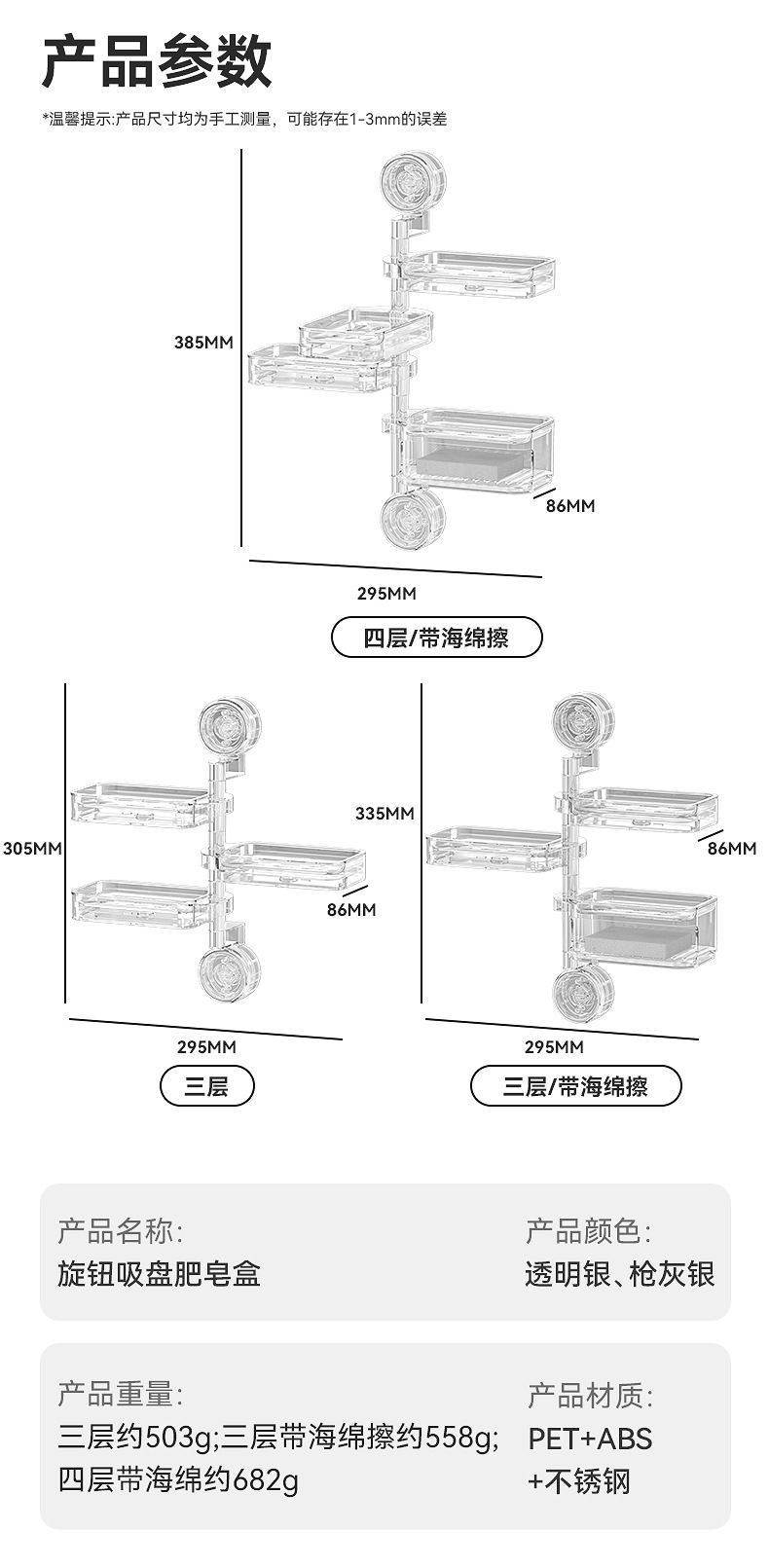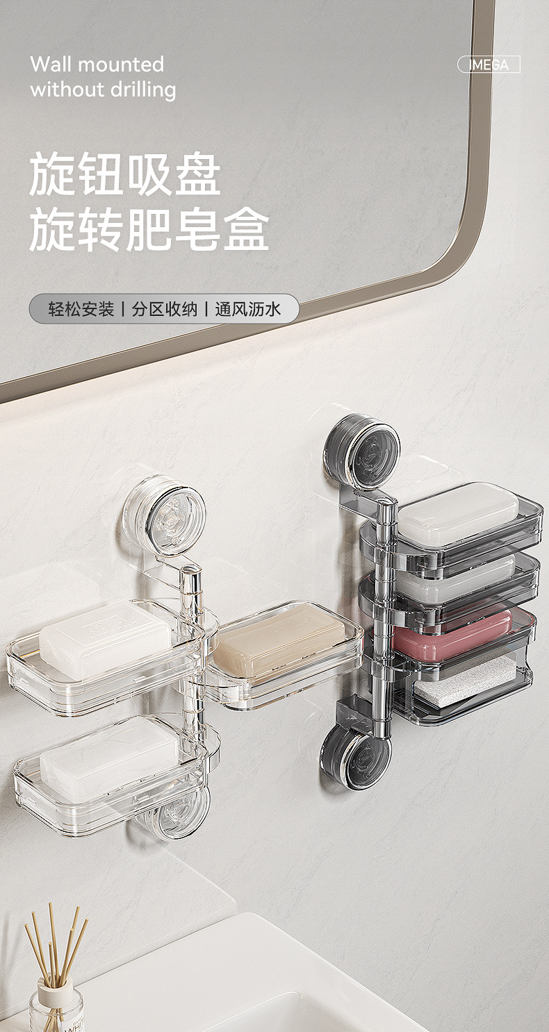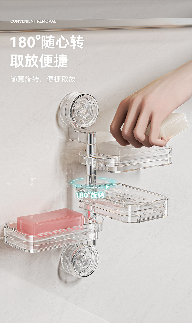 rotating suction cup soap storage box three layers (transparent)