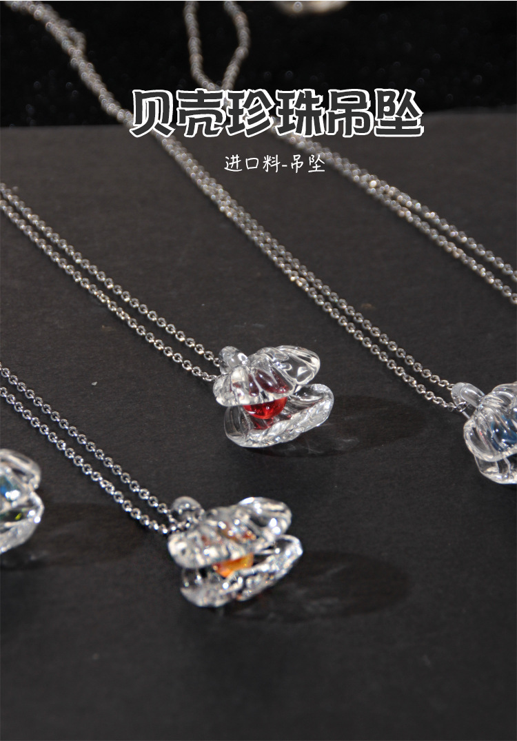 secret pearl shell pendant +925 silver necklace + pe gift box