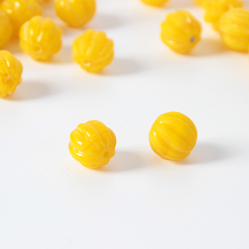 yellow chicken grease pumpkin beads glossy 12mm