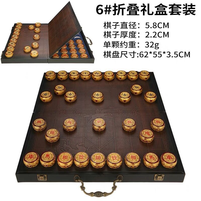 5.8cm chess pieces + leather folding chessboard