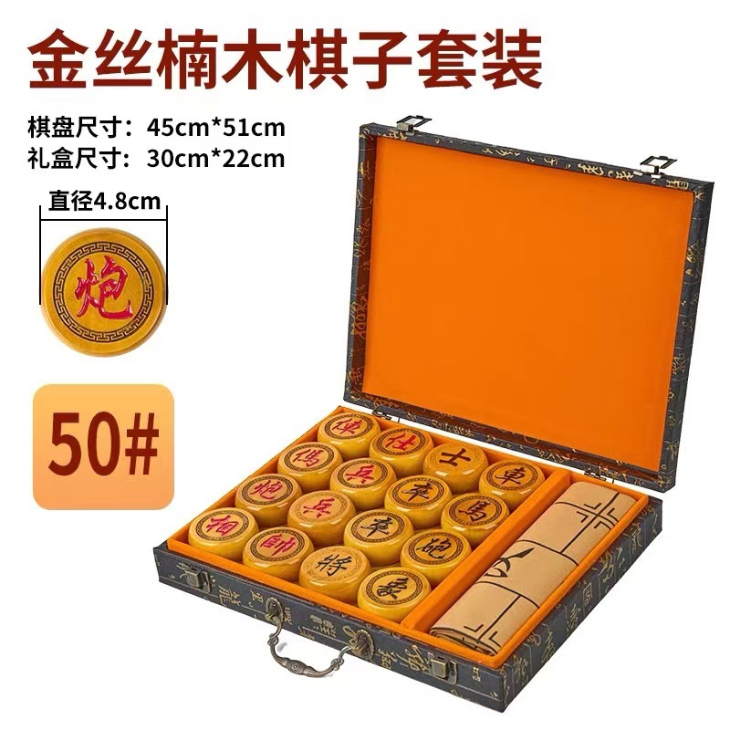 | 产品信息 《产品名称》:九龙镀金象棋 《产品材质》:金丝楠木的小叶桢楠 《材质产地》:国内 《产品规格》:直径4.8cm,厚度2.0cm。直径5.8cm,厚度2.25cm。 |