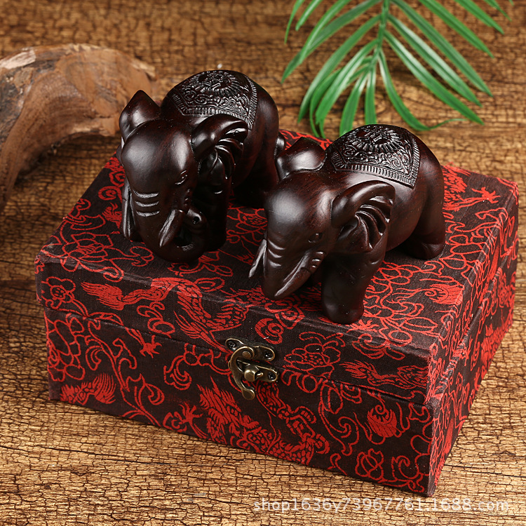 | 产品信息 《名称》:非洲黑檀木富贵象 《产地》:木材产地: 非洲 《规格》:长12,宽6,高8公分 《成品产地》: 仙作工艺-福建 仙游 《包装》:布锦盒 |