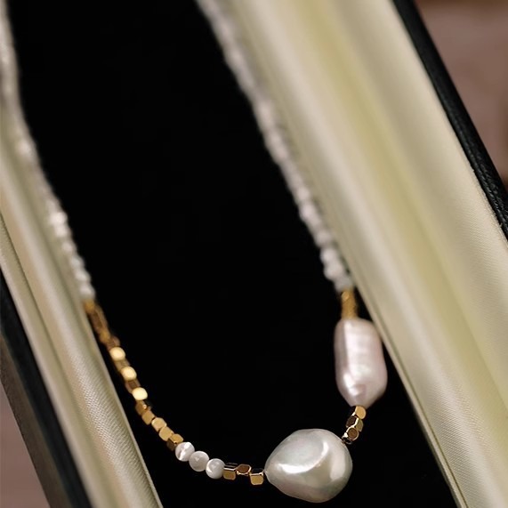 baroque freshwater pearl + shell necklace