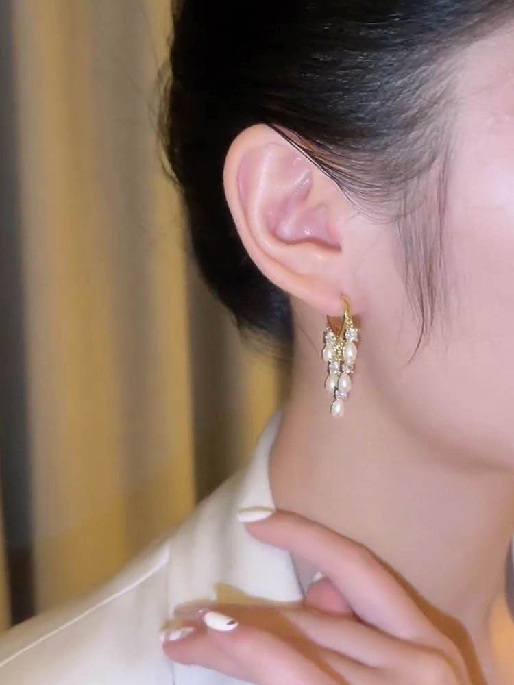 pearl water drop love ear clip