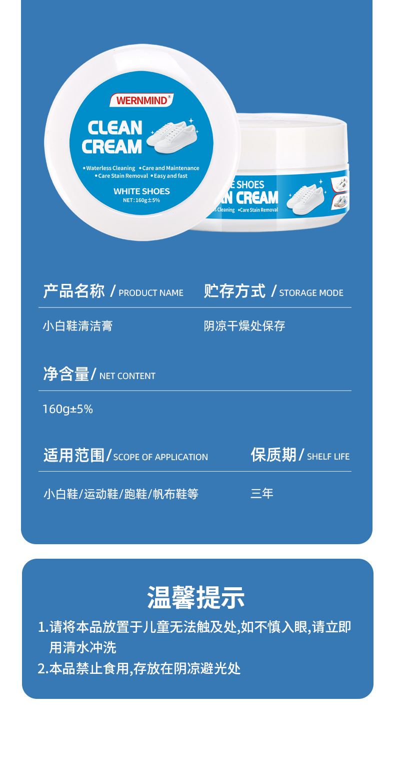wernmind english version 160g white shoes cleaning cream