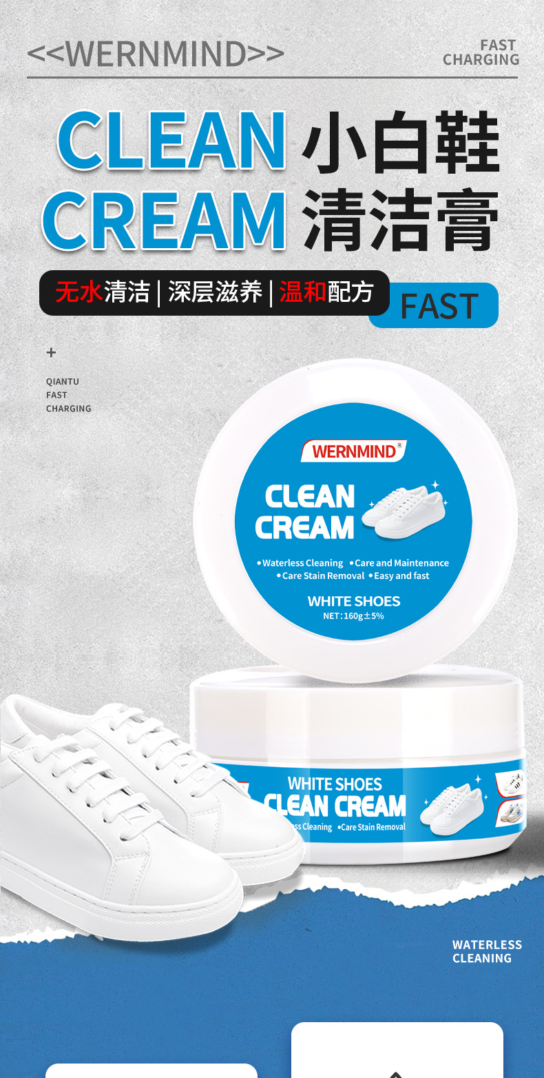 wernmind english version 160g white shoes cleaning cream