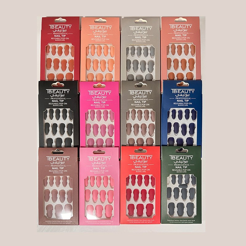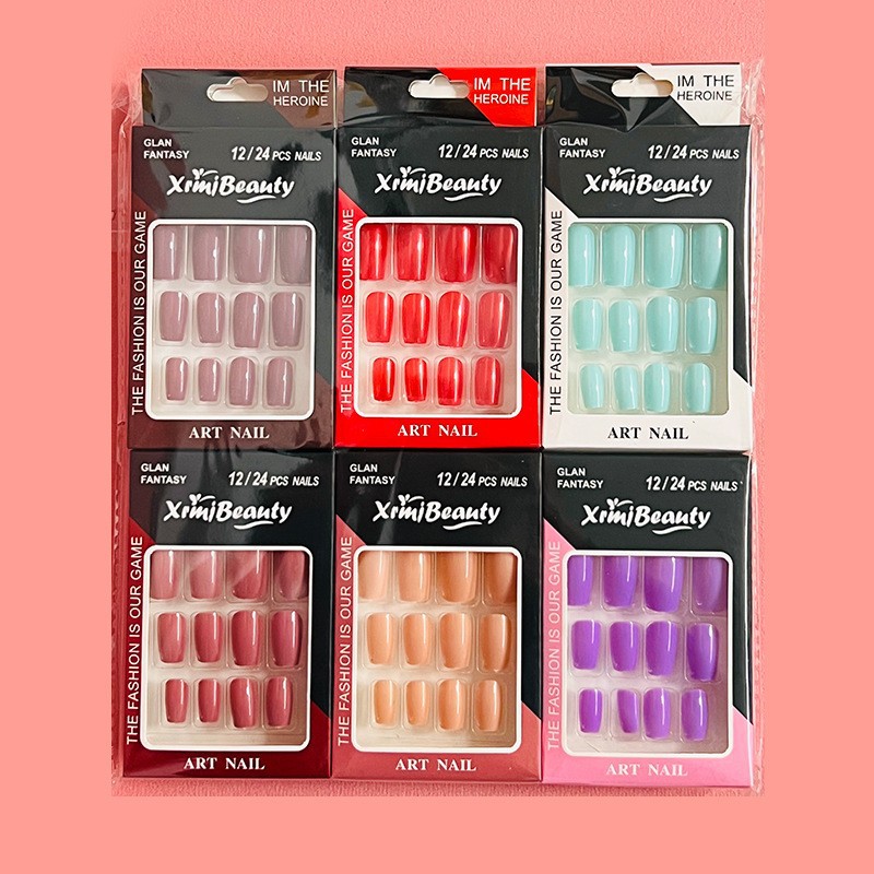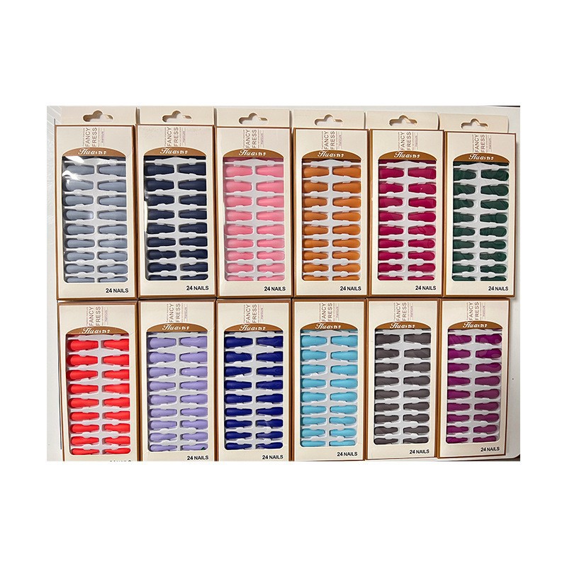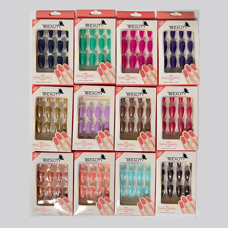 simple wear nail solid color round head nail finished product 12pcs wear nail short fake nails solid color wear nail