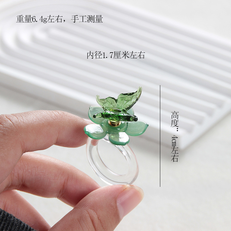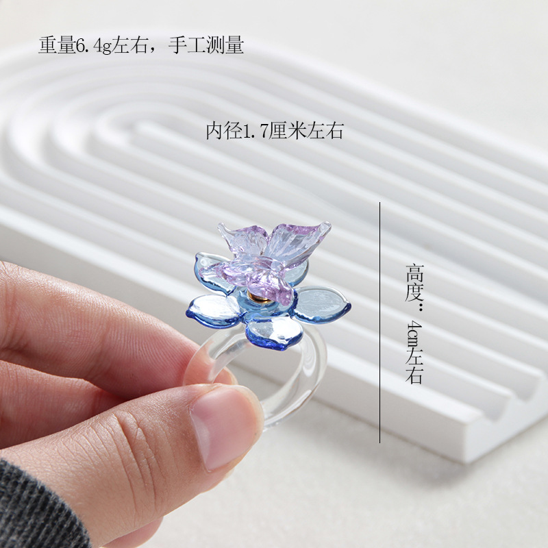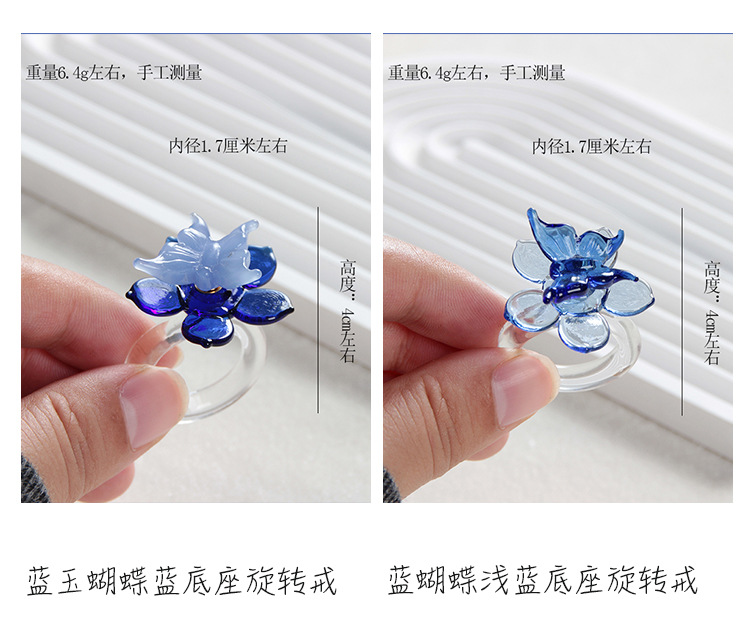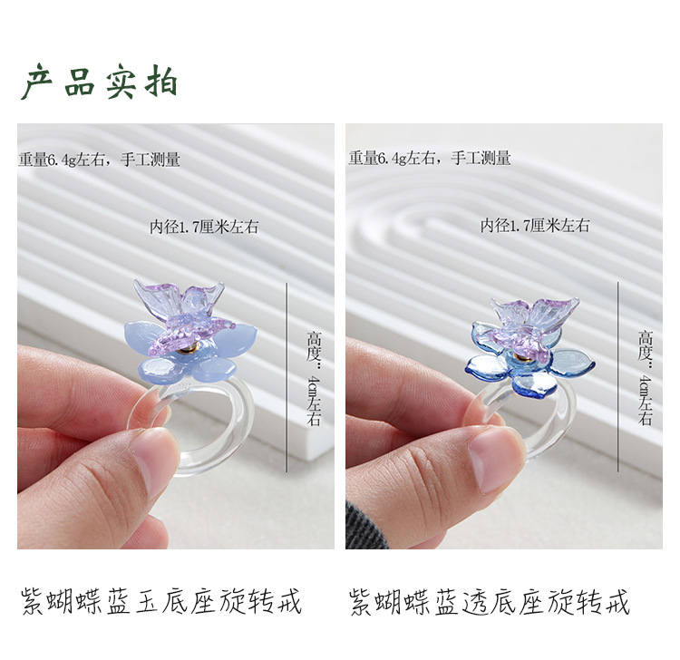 blue butterfly blue transparent base spinning ring