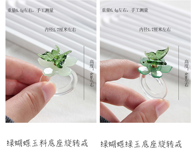 green butterfly jade base spinning ring