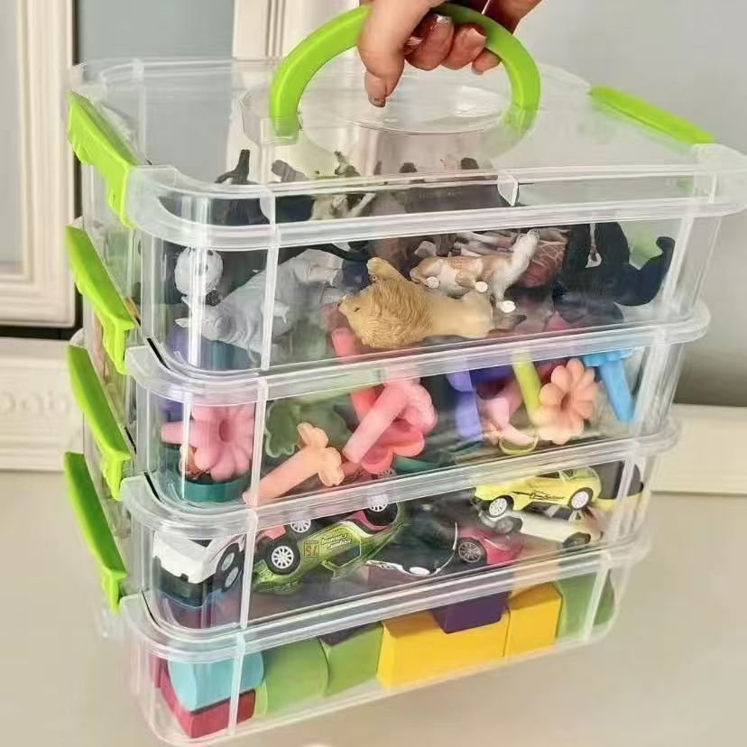 green stackable building blocks storage box lid
