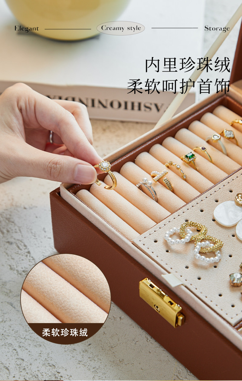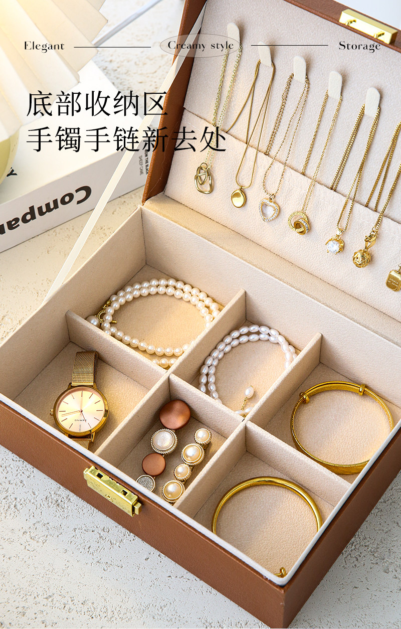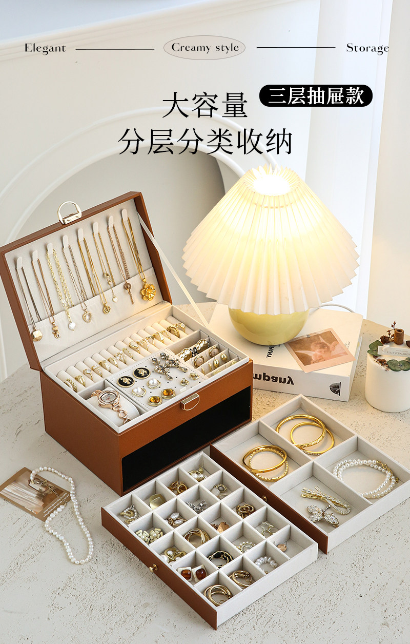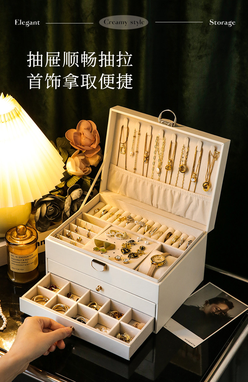 cream white-three-layer drawer [leather surface + pearl velvet lining + with lock]]