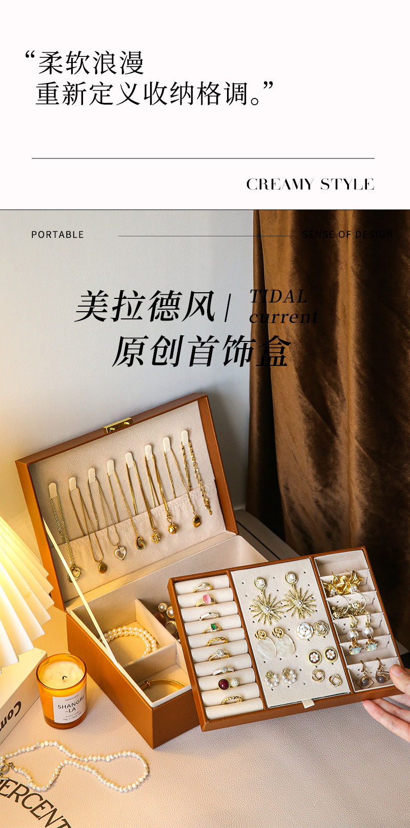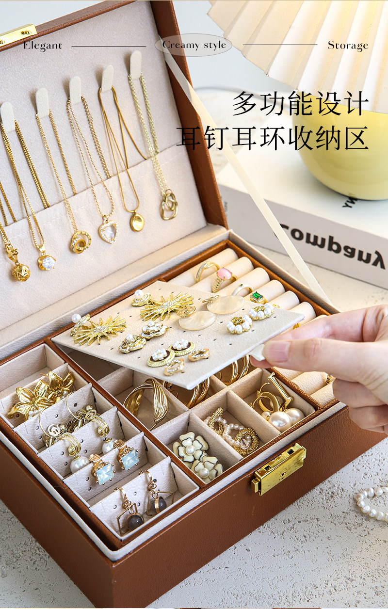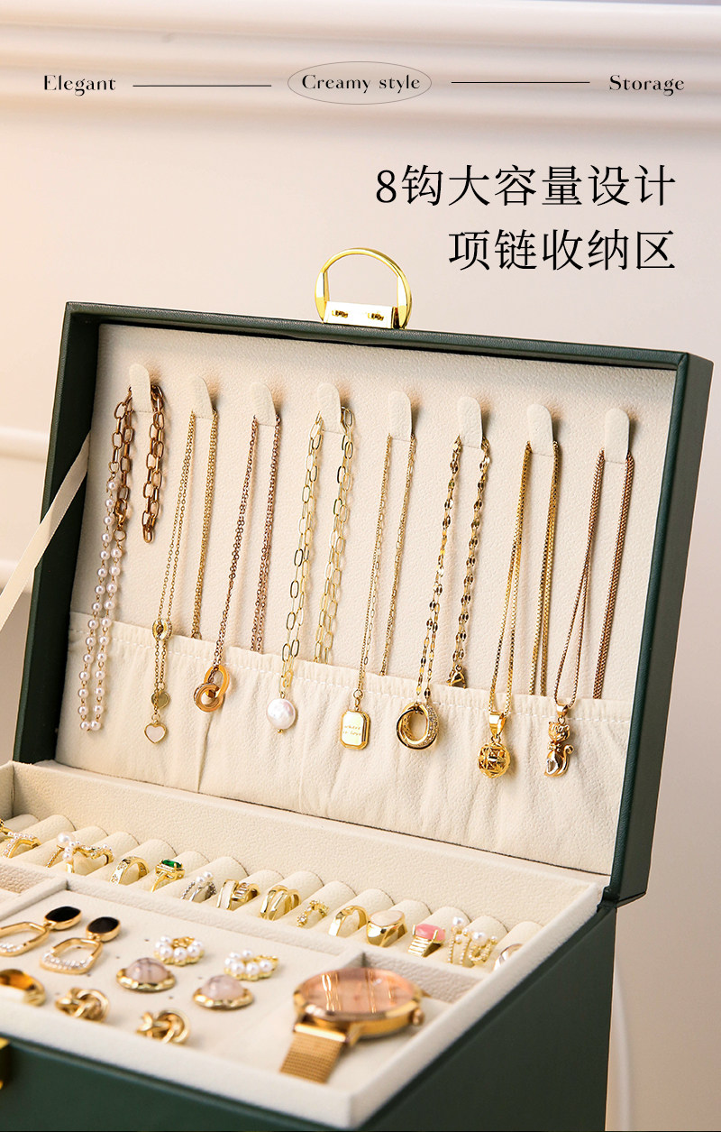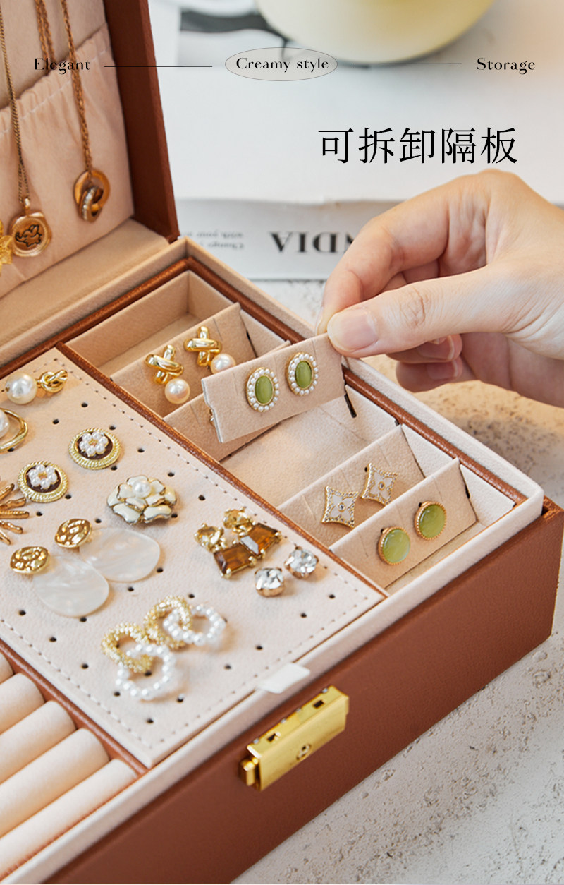 cream white-three-layer drawer [leather surface + pearl velvet lining + with lock]]