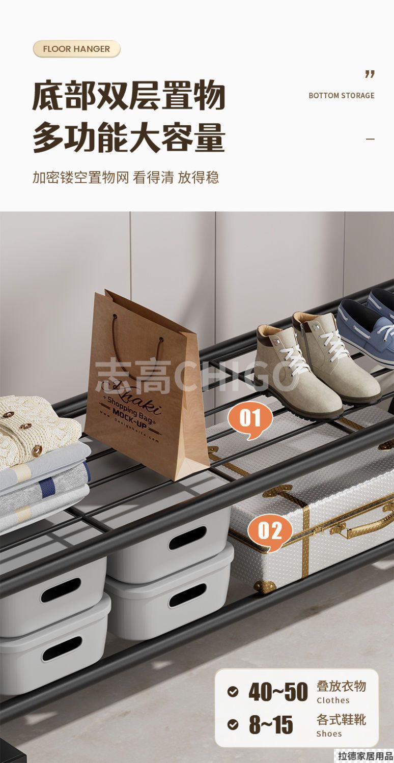 110cm black single rod + double clothes hook