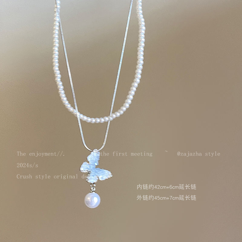 double-layer pearl butterfly necklace