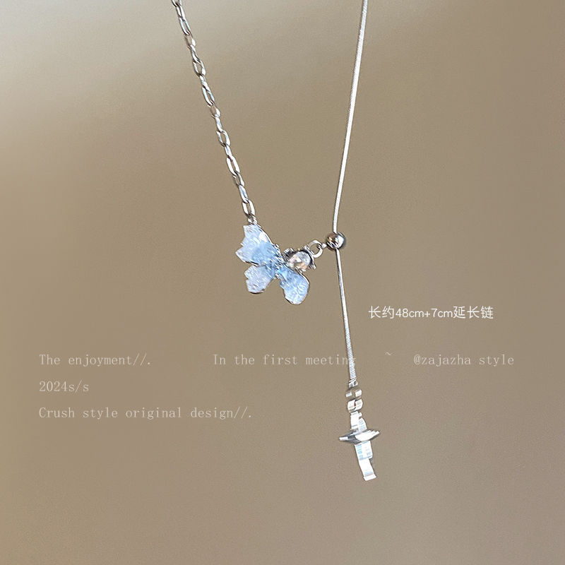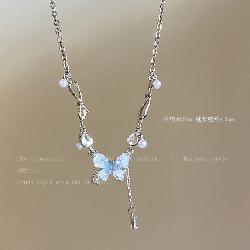 ice crystal blue pearl butterfly necklace