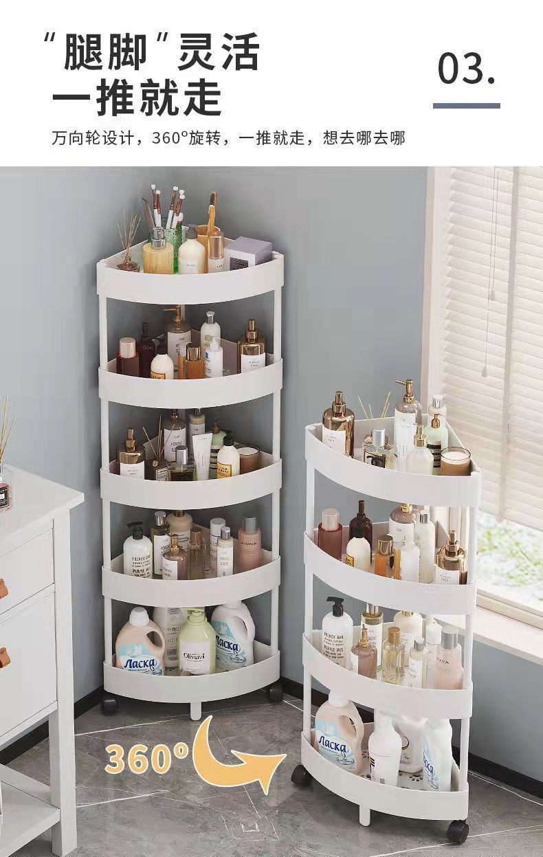 multifunctional floor storage rack/three-layer elegant white +4 pulleys