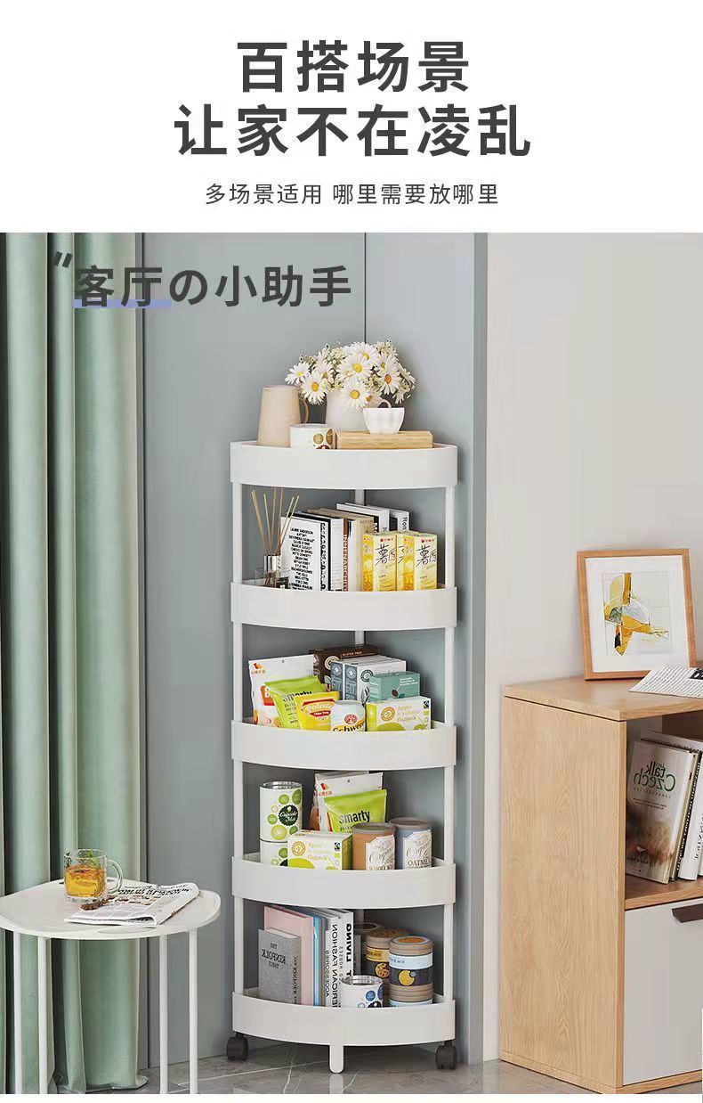 multifunctional floor storage rack/five-layer elegant white +4 pulleys