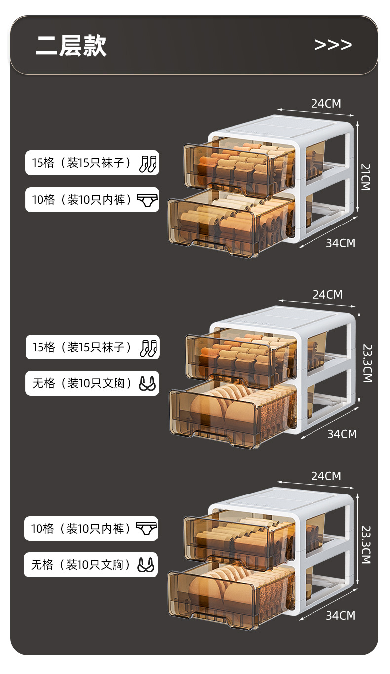 brown independent layered [underwear + underwear + socks] storage box