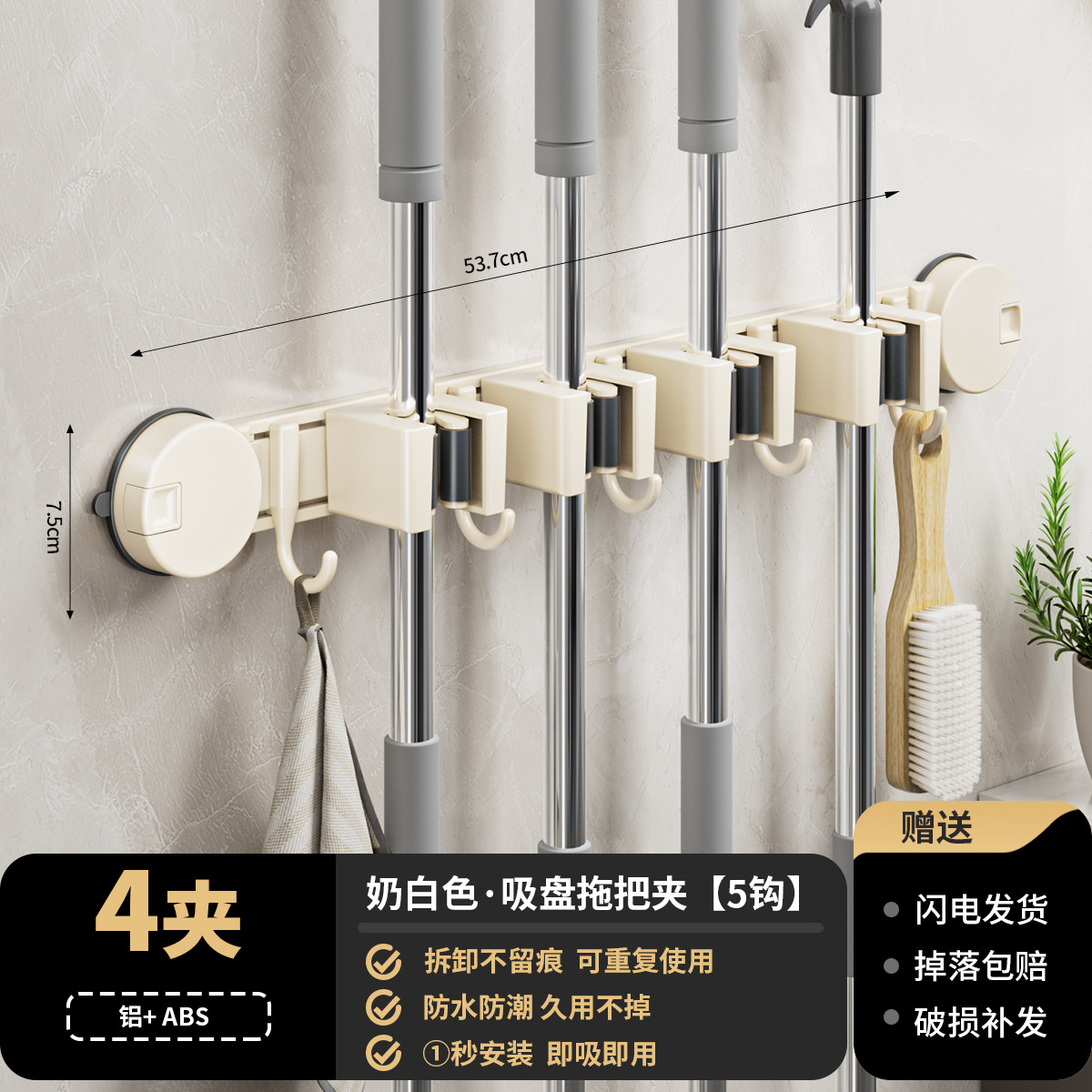 milky white sucker mop rack (4 slippers)