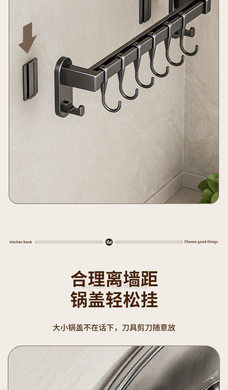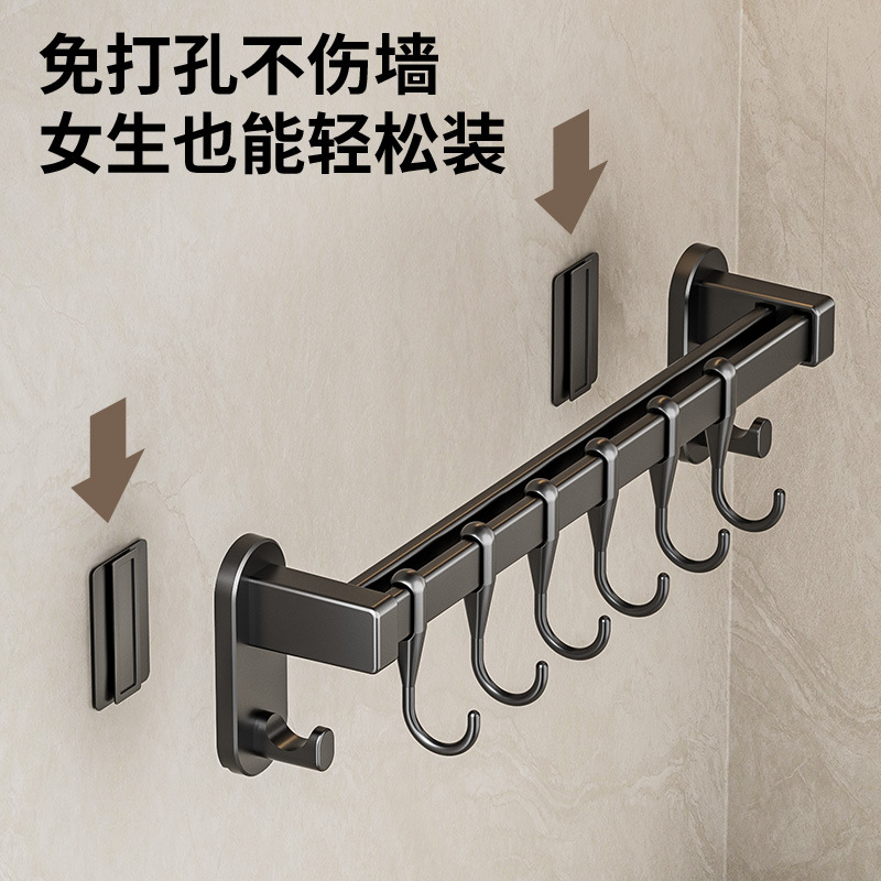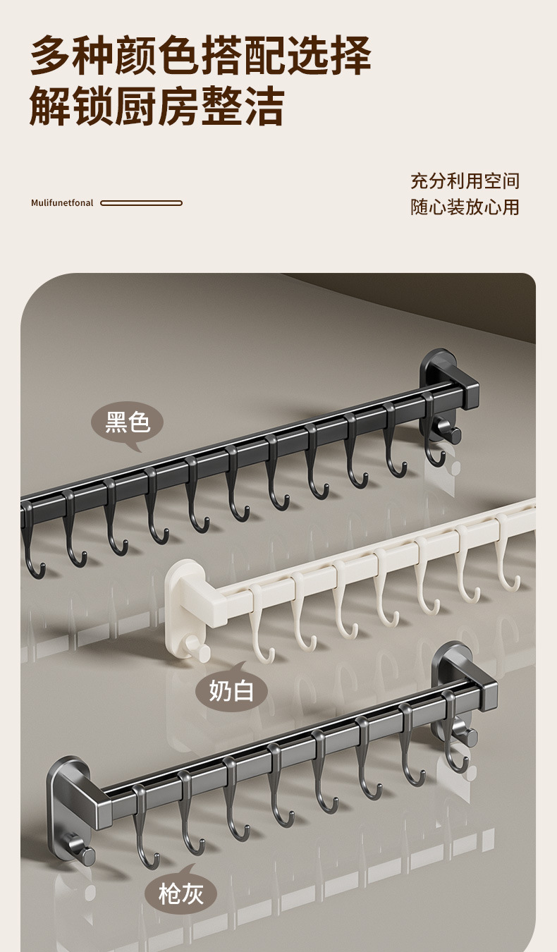 gun gray 30cm double rod +6 hooks 2 wide hook [can put pot cover knife inserting]]