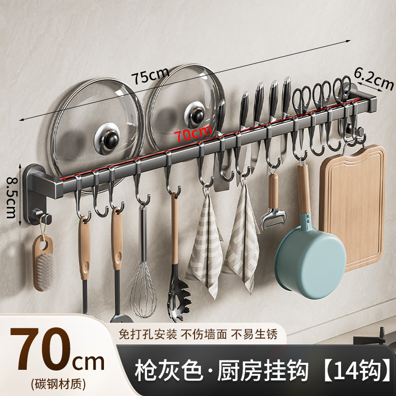 gun gray 60cm double rod +12 hook 2 wide hook [can put pot cover knife inserting]]