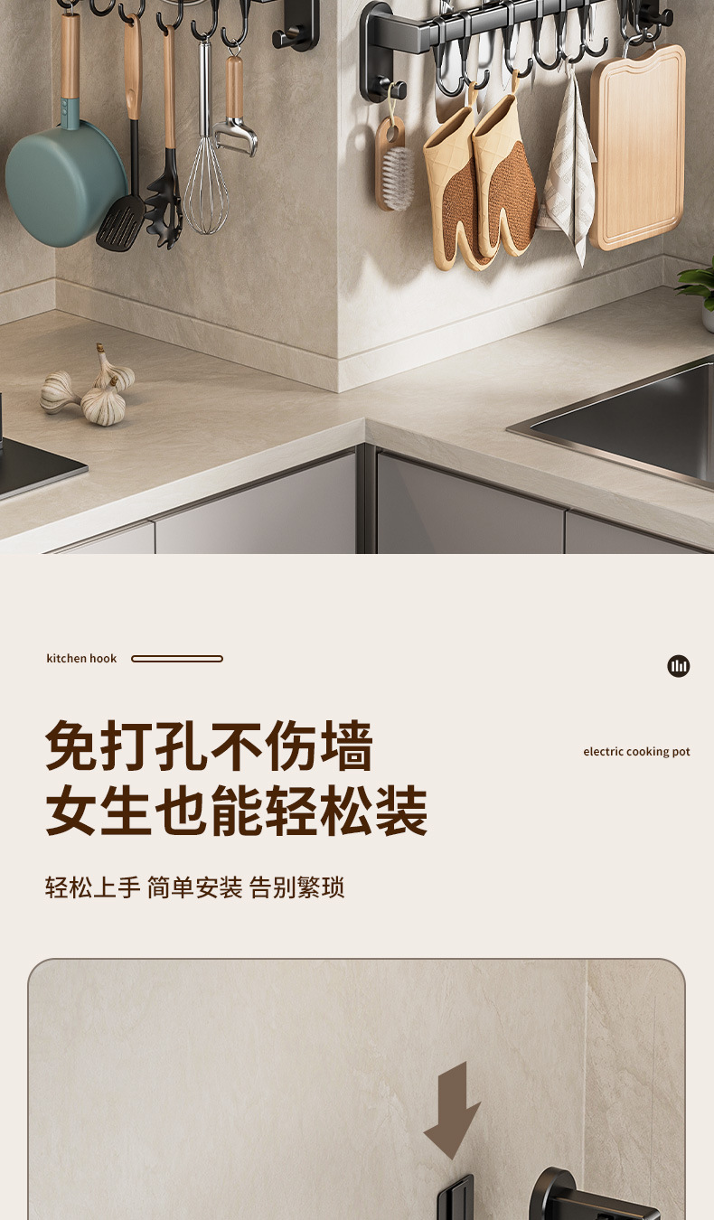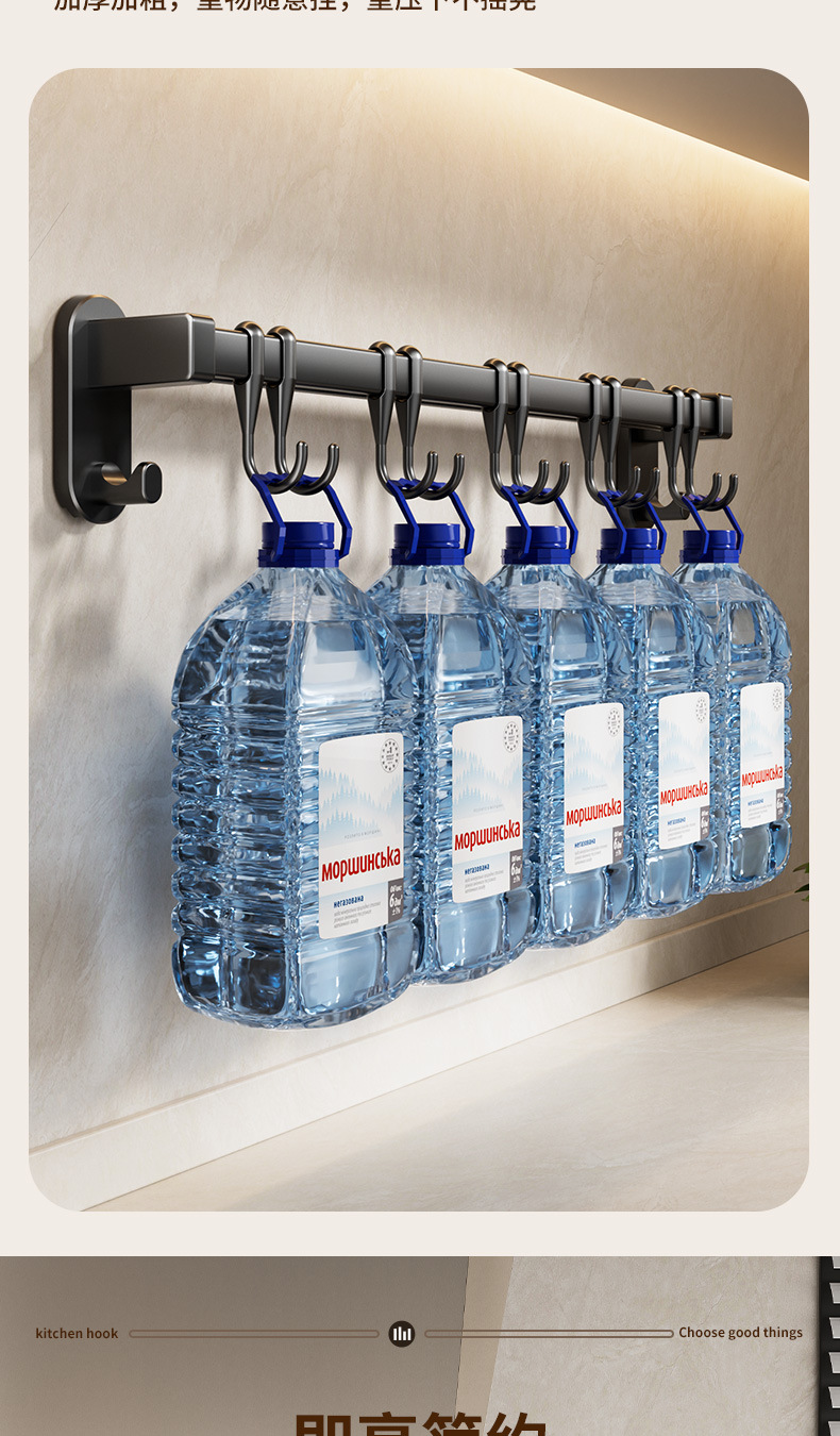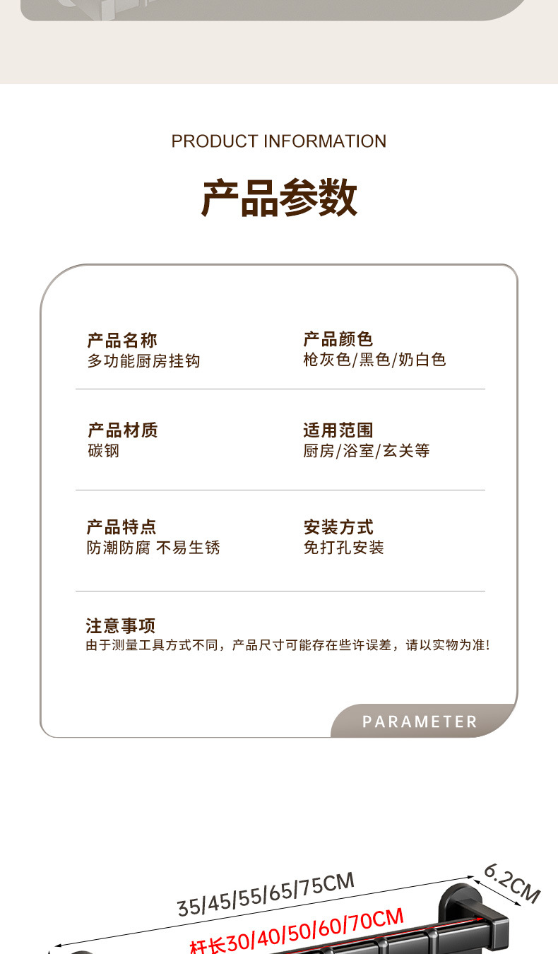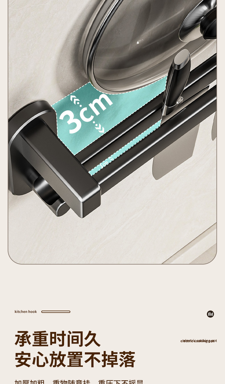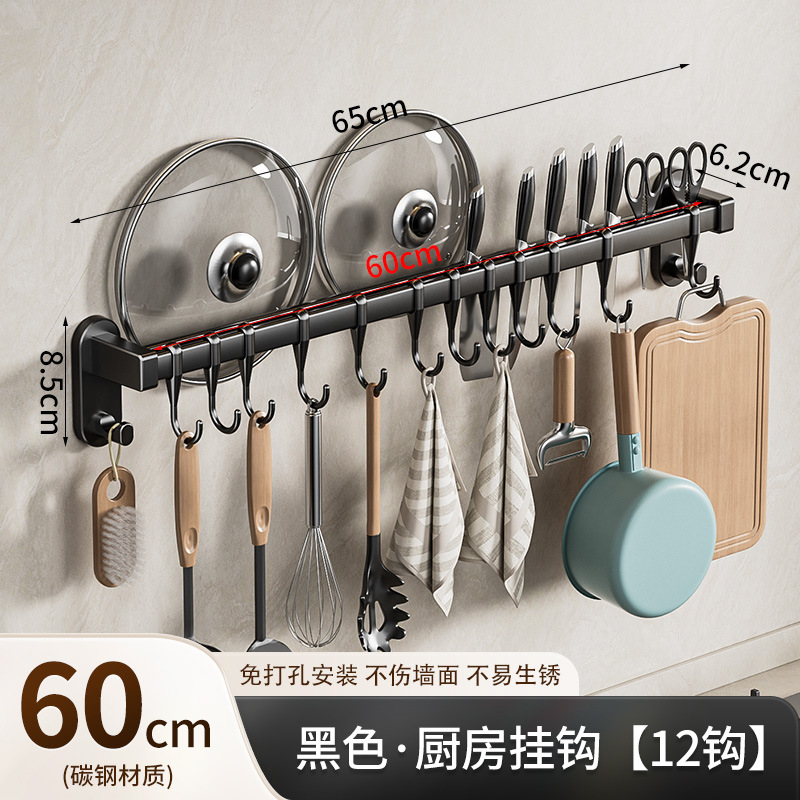 black 60cm double rod +12 hooks 2 wide hooks [can put pot cover insert knife]]