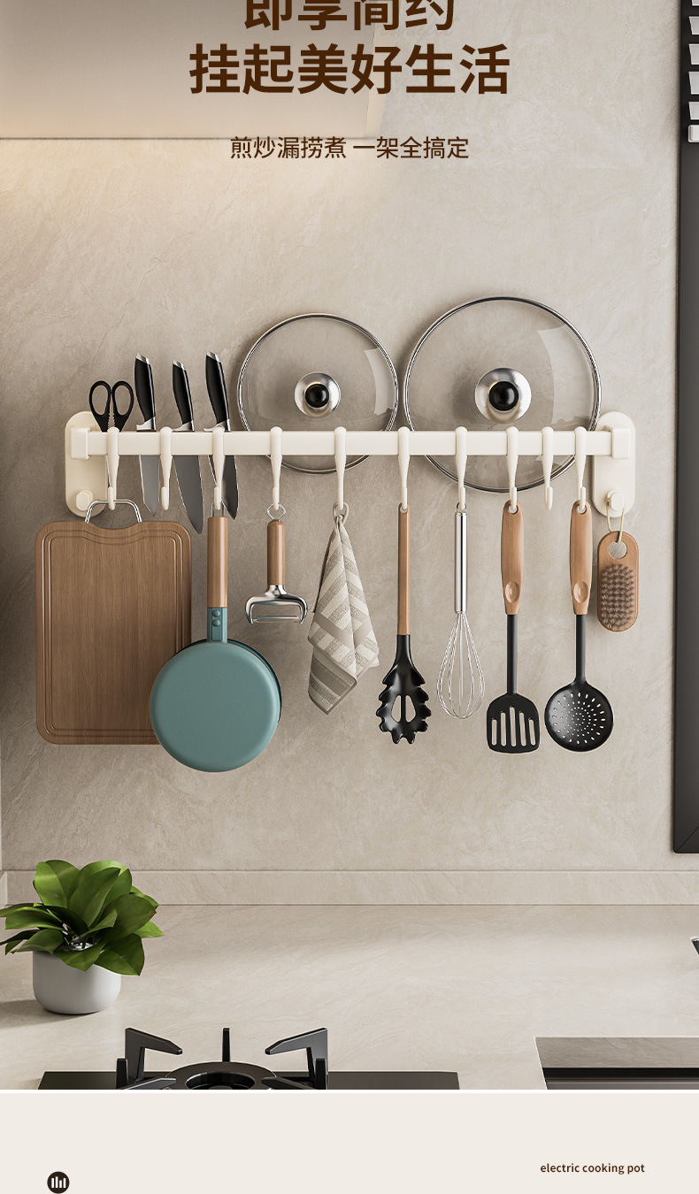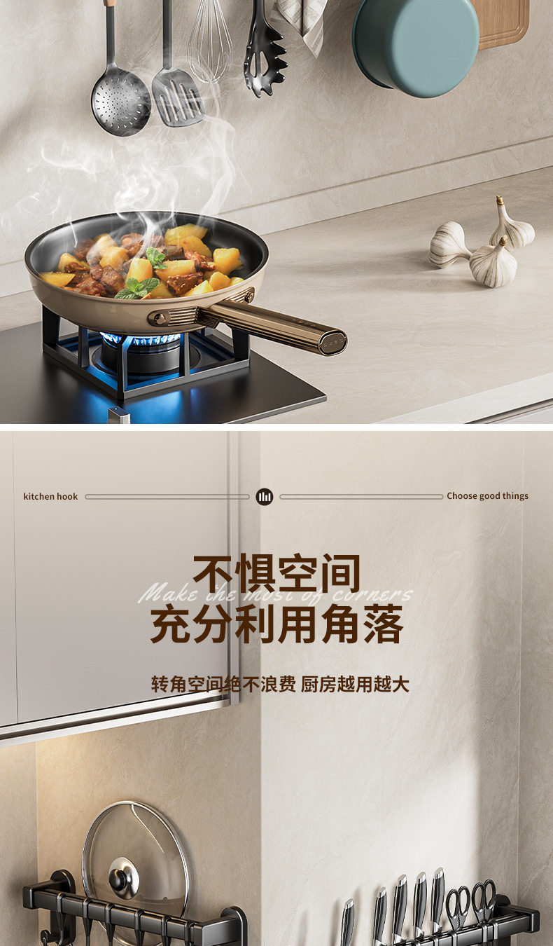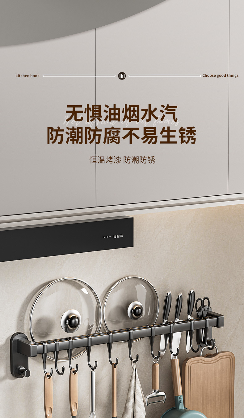 gun gray 50cm double rod +10 hook 2 wide hook [can put pot cover knife inserting]]