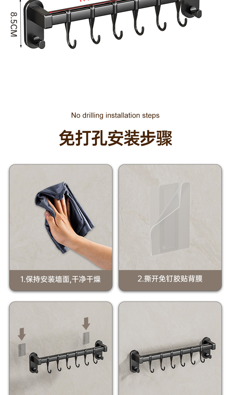 black 40cm double rod +8 hooks 2 wide hook [can put pot cover knife inserting]]