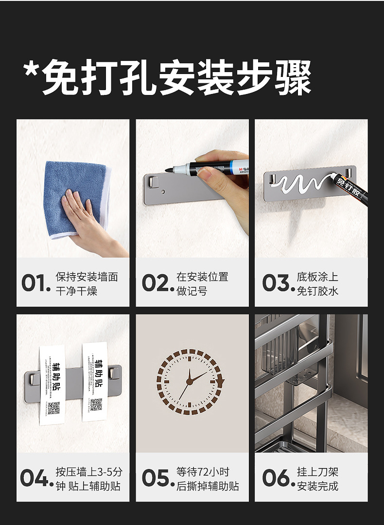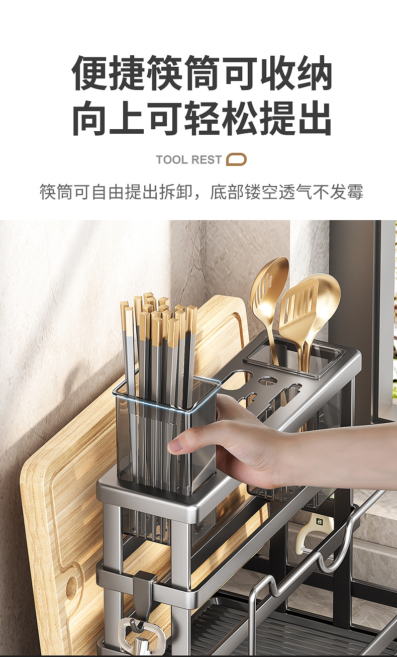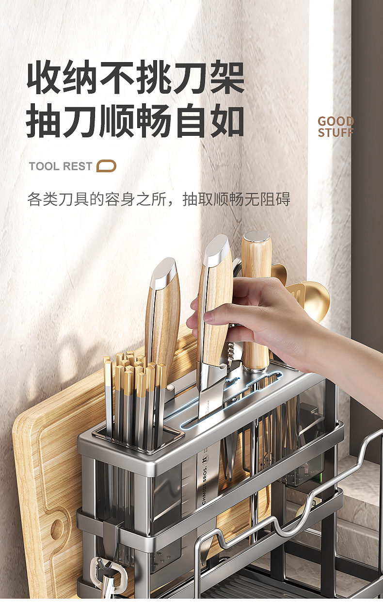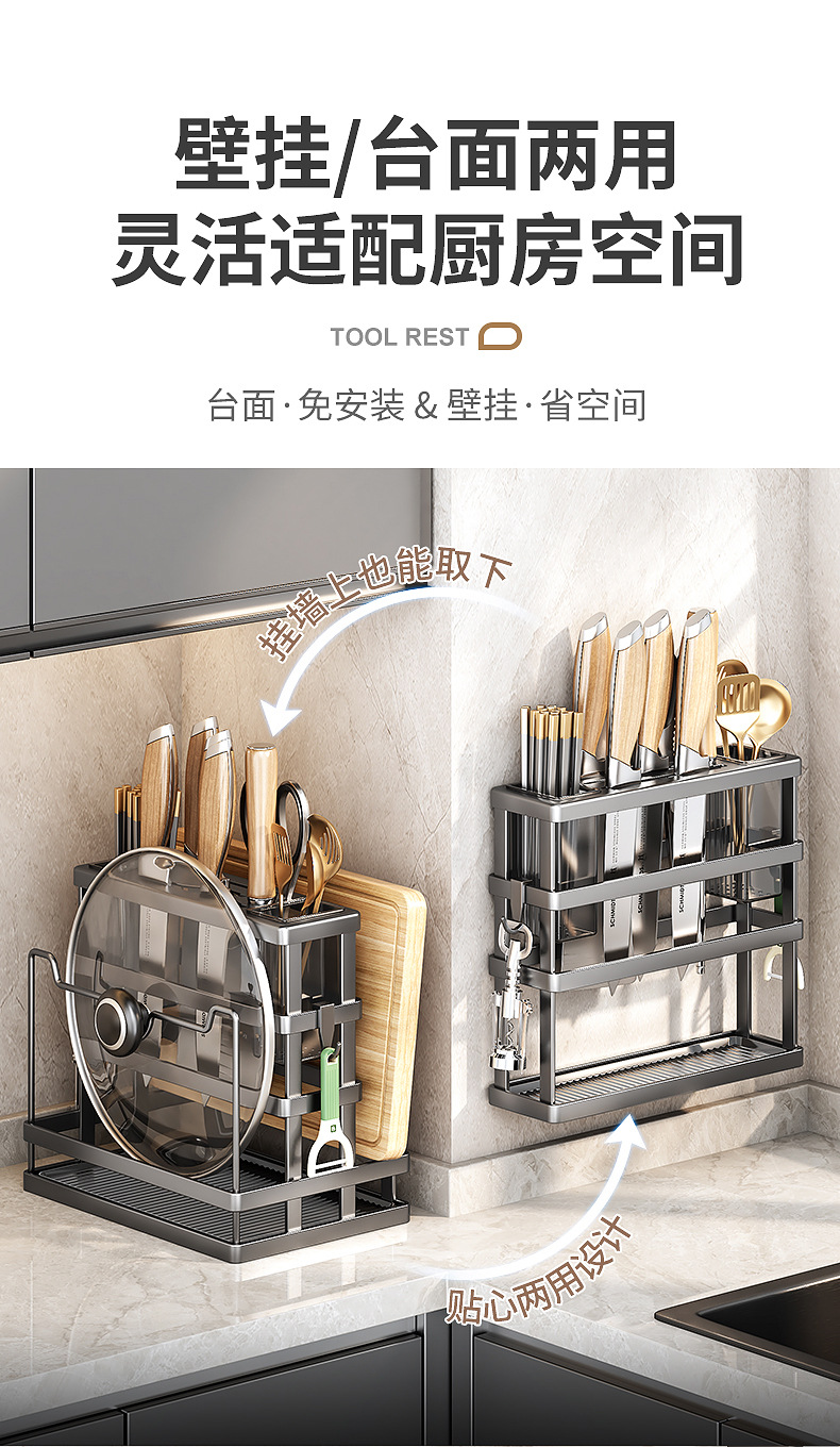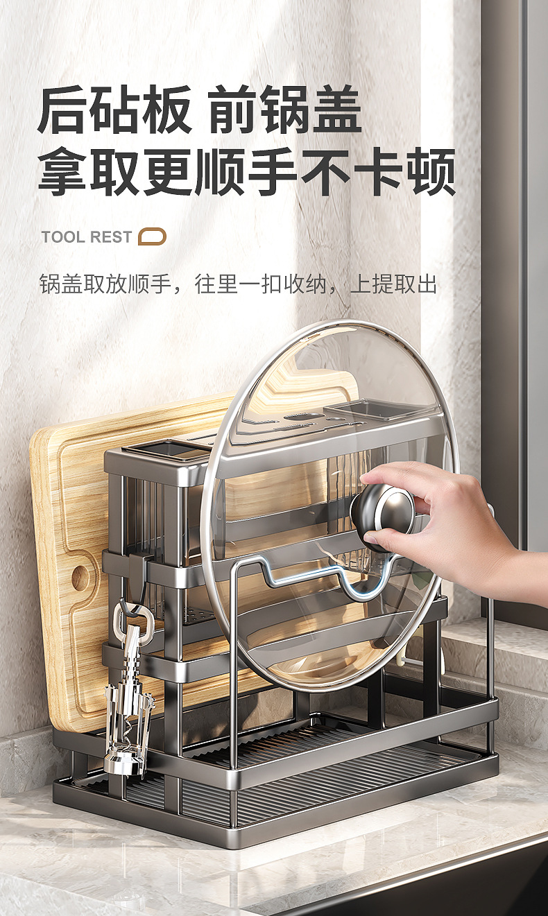 gun gray-knife rest + chopstick canister + chopping board rack + pot cover rack
