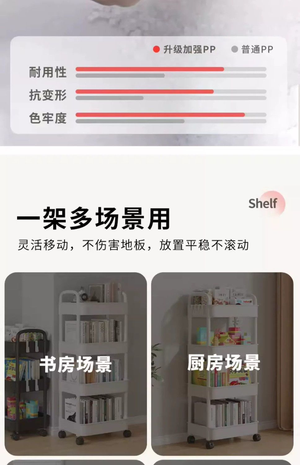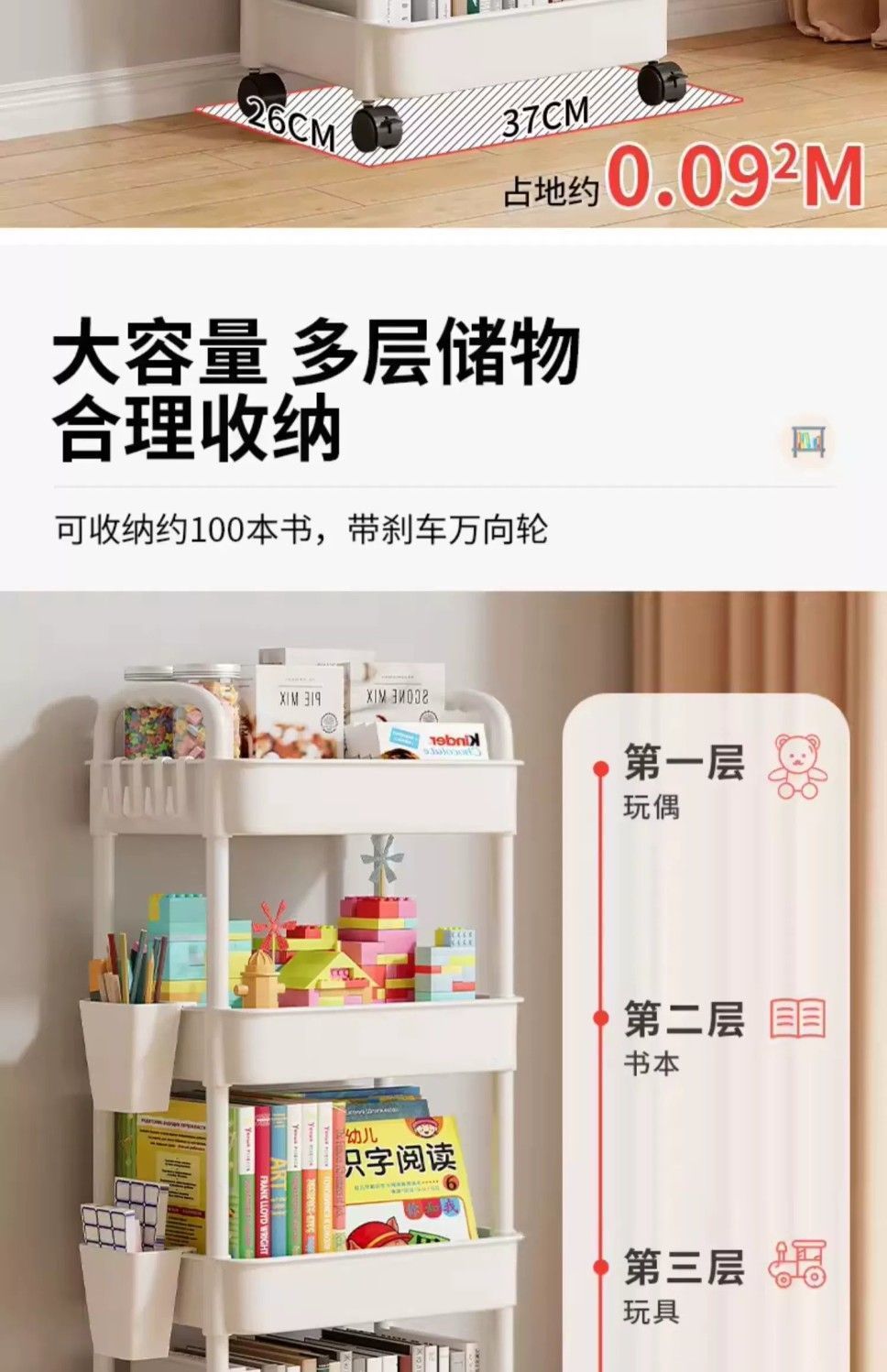[cloud white] -- three layers [free hooks + wheels + stickers]]