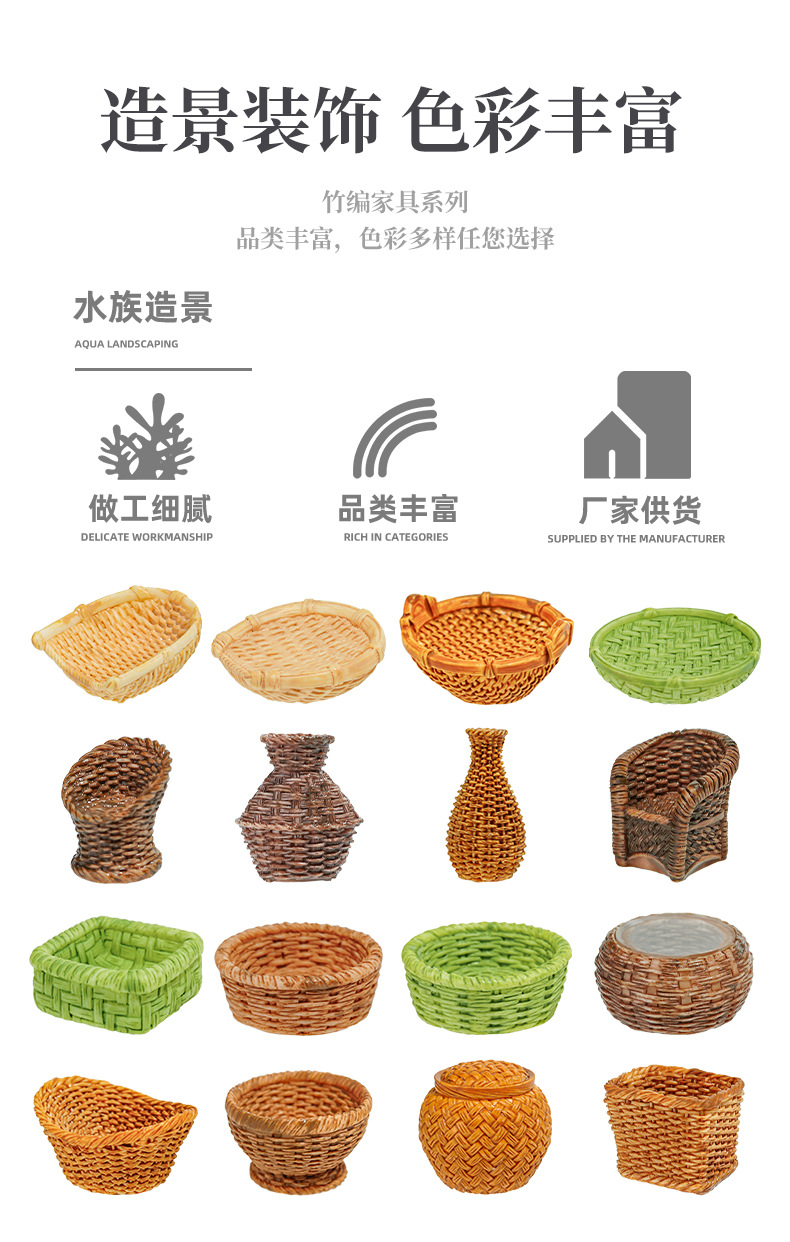 bamboo furniture resin decorations bamboo chair dustpan fish basket basket bamboo pot crafts creative home micro landscape ornaments
