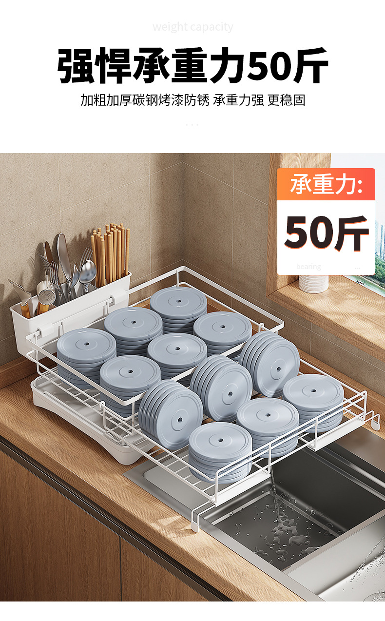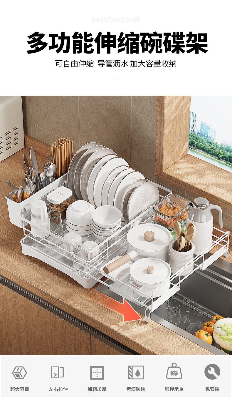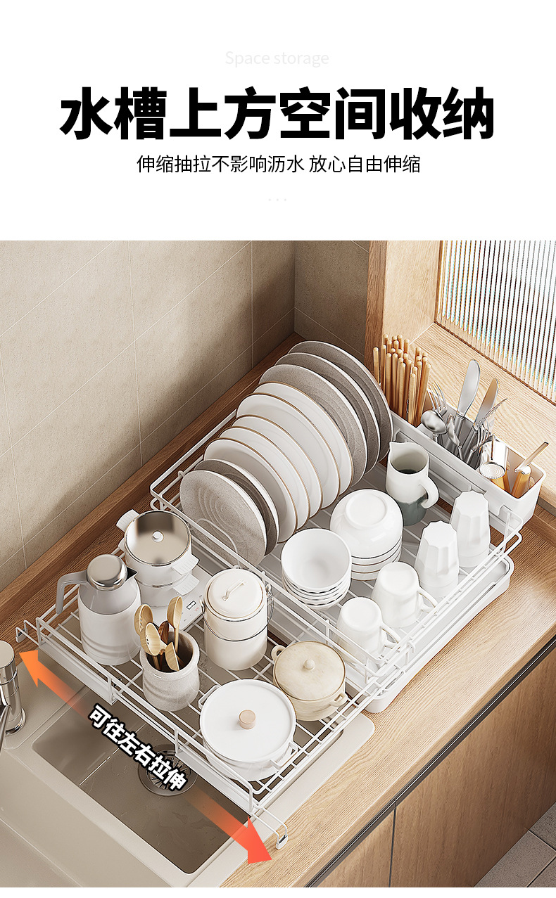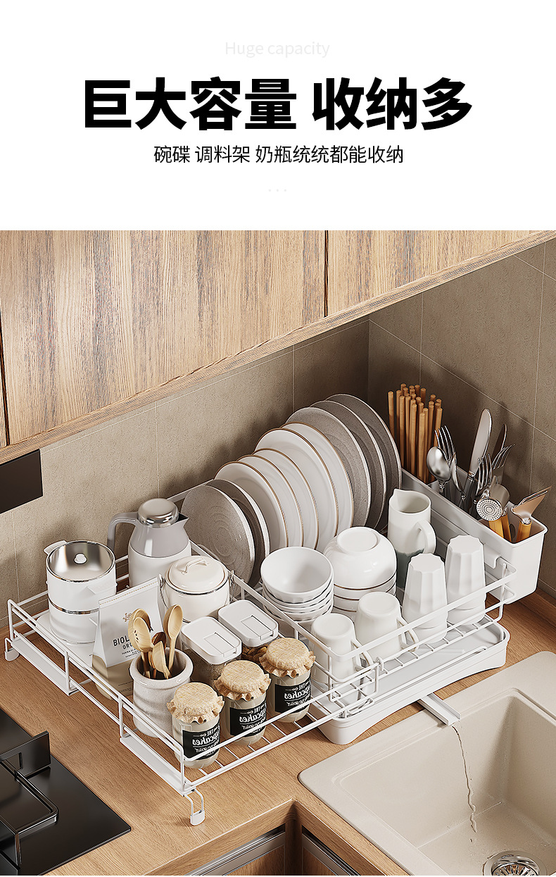 cross-border direct sales japanese and korean dish drying storage rack kitchen storage rack retractable water tank rack white dish draining rack