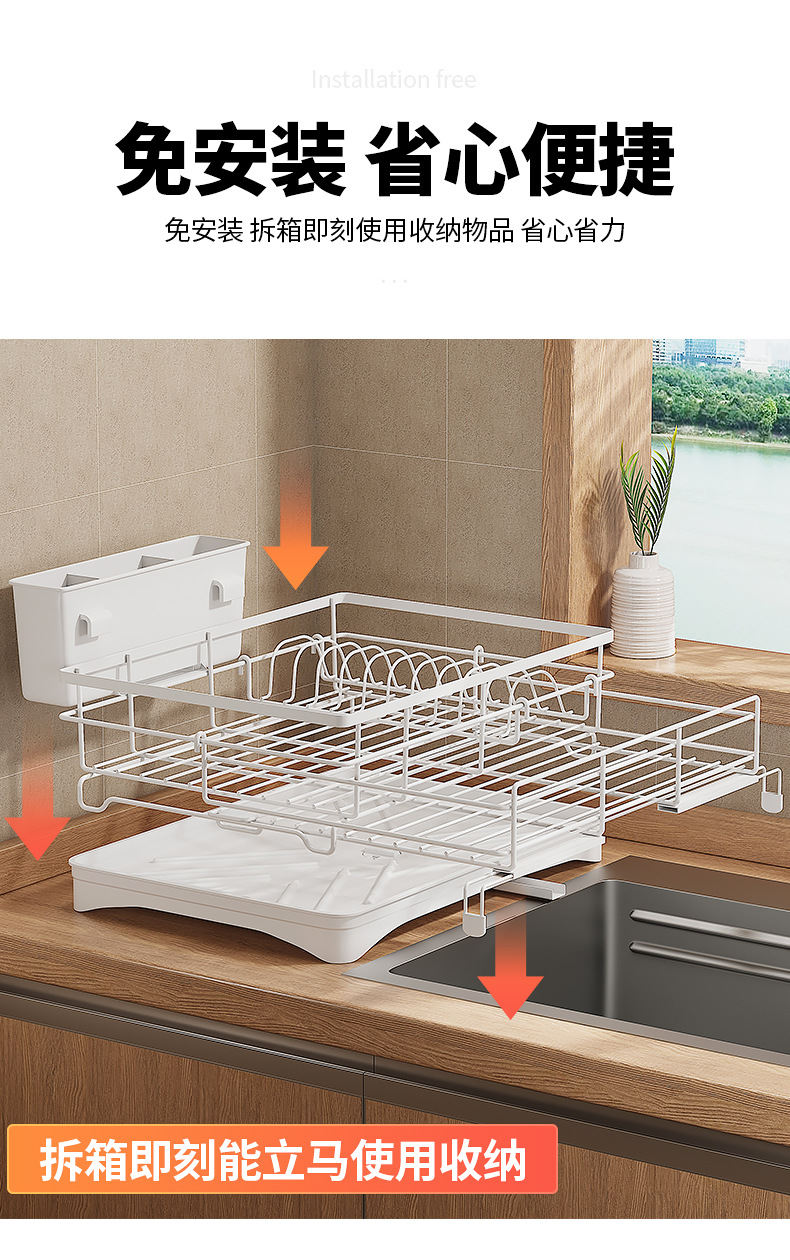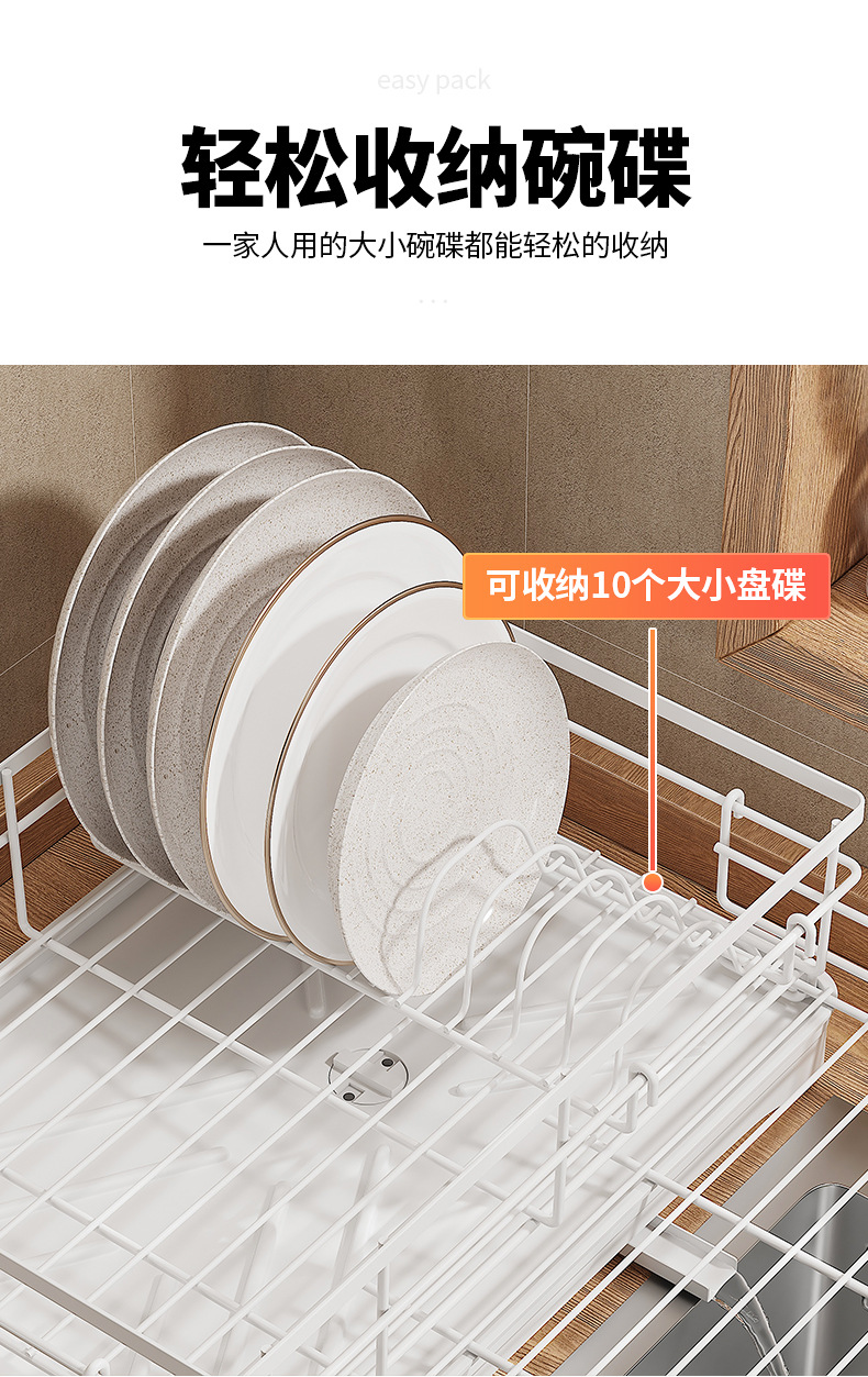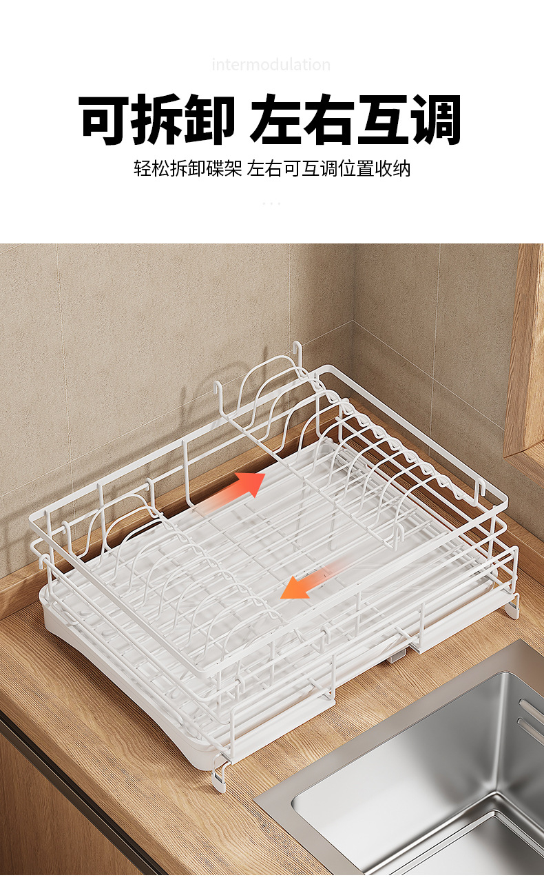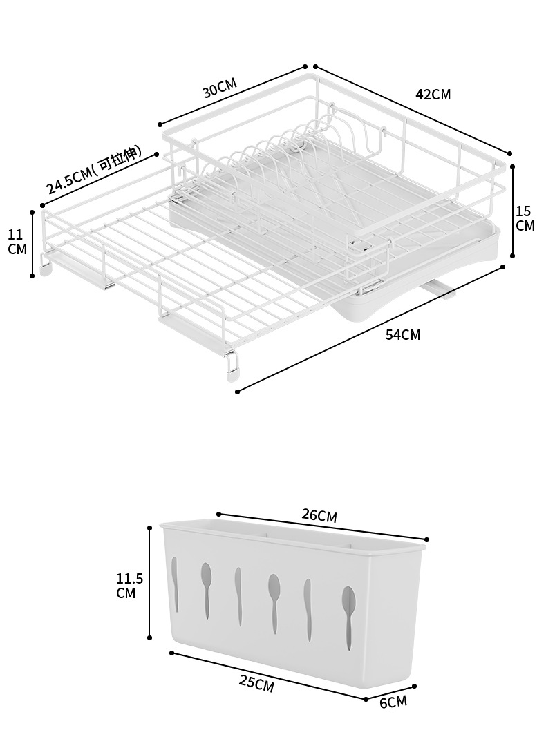 cross-border direct sales japanese and korean dish drying storage rack kitchen storage rack retractable water tank rack white dish draining rack
