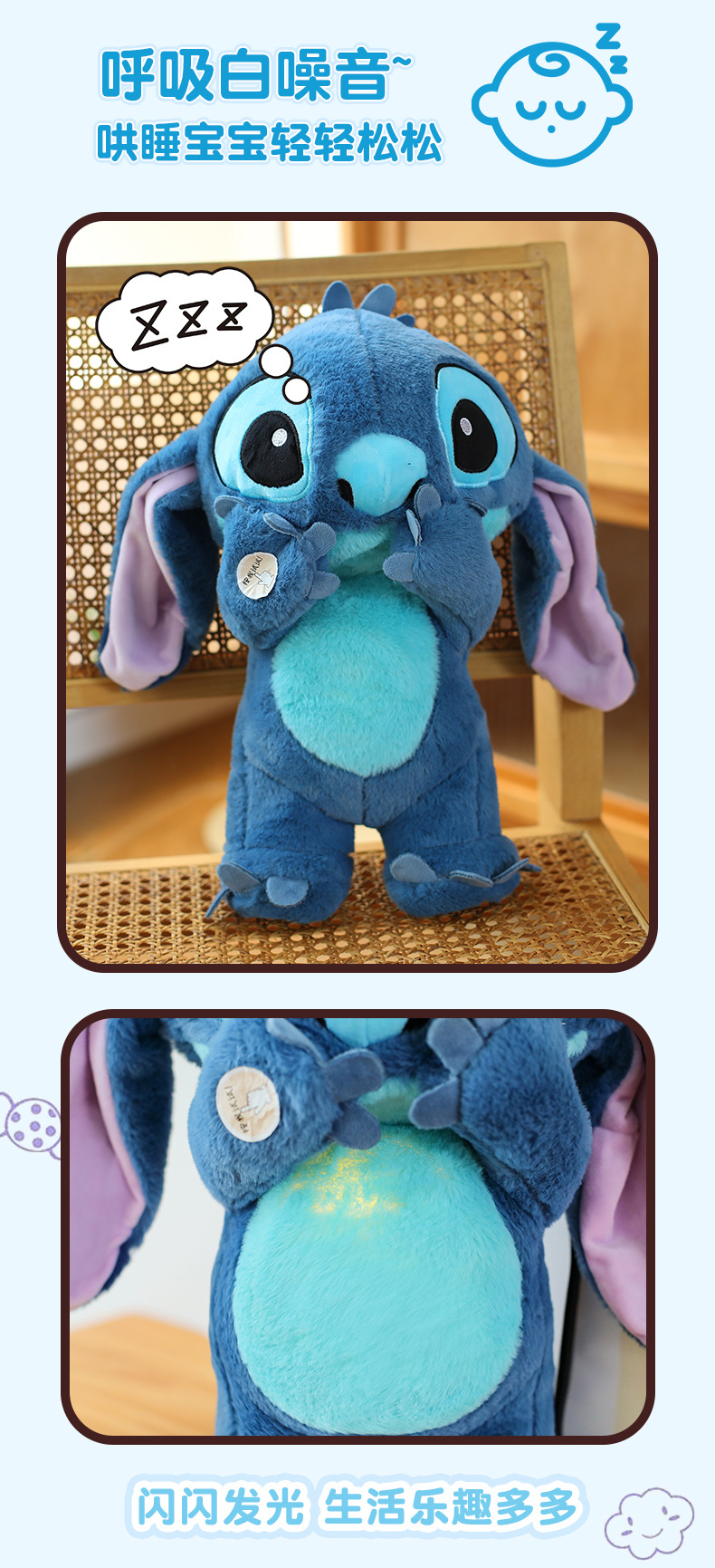 new breathing stitch pillow baby early education toys light music coax sleeping doll get children's birthday gifts free